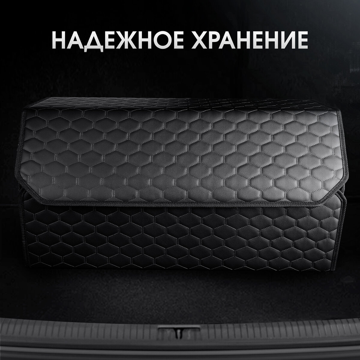 Органайзер в багажник автомобиля. Автомобильный аксессуар для хранения. Модель DIAMOND соты 50*35*30. Черный