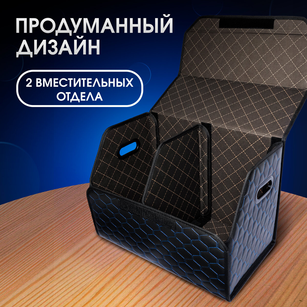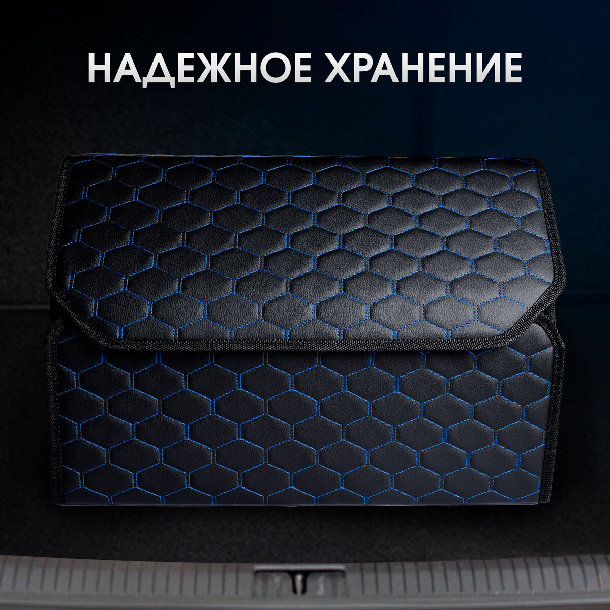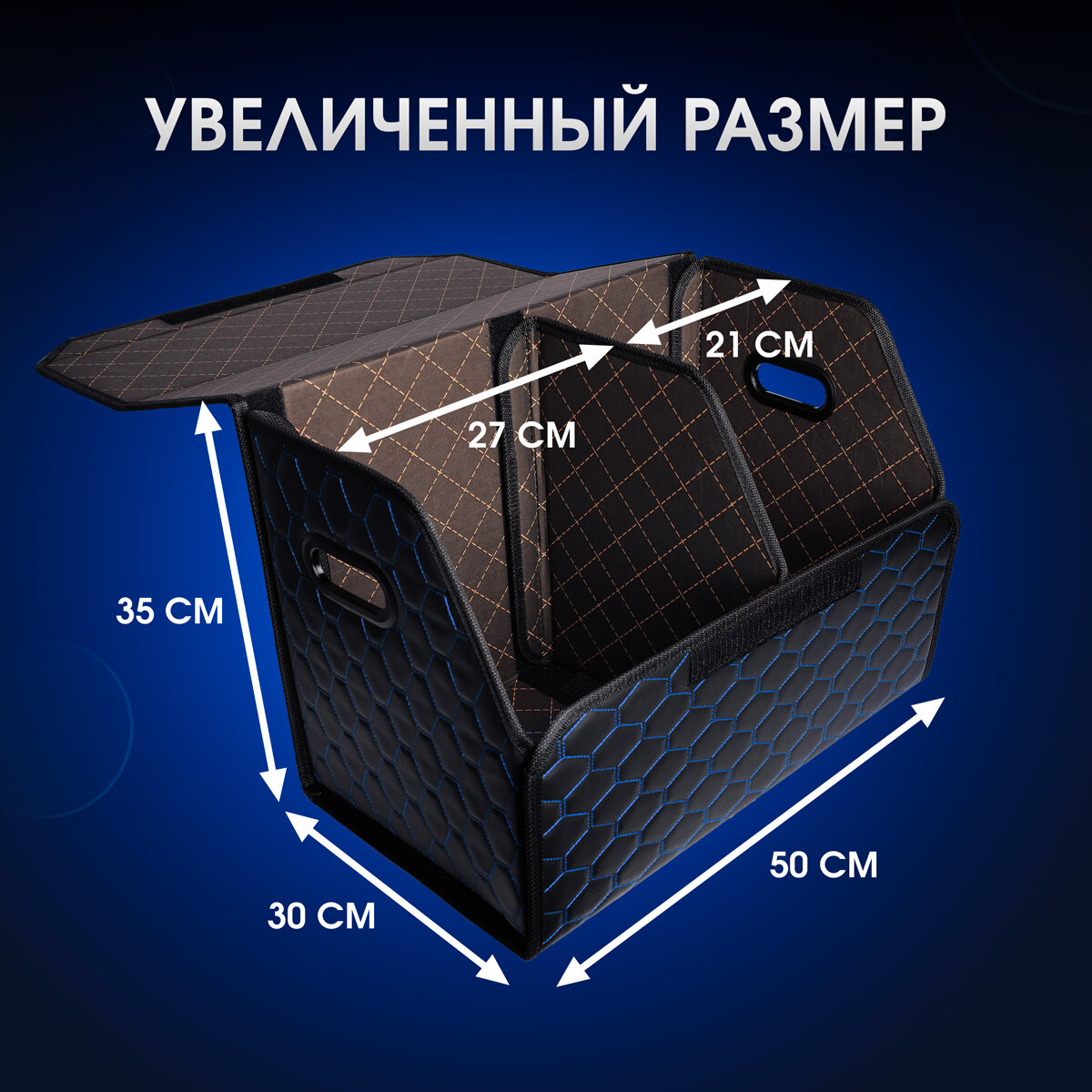 Органайзер в багажник автомобиля. Бокс для хранения в авто 50*35*30. Чёрный/синяя строчка