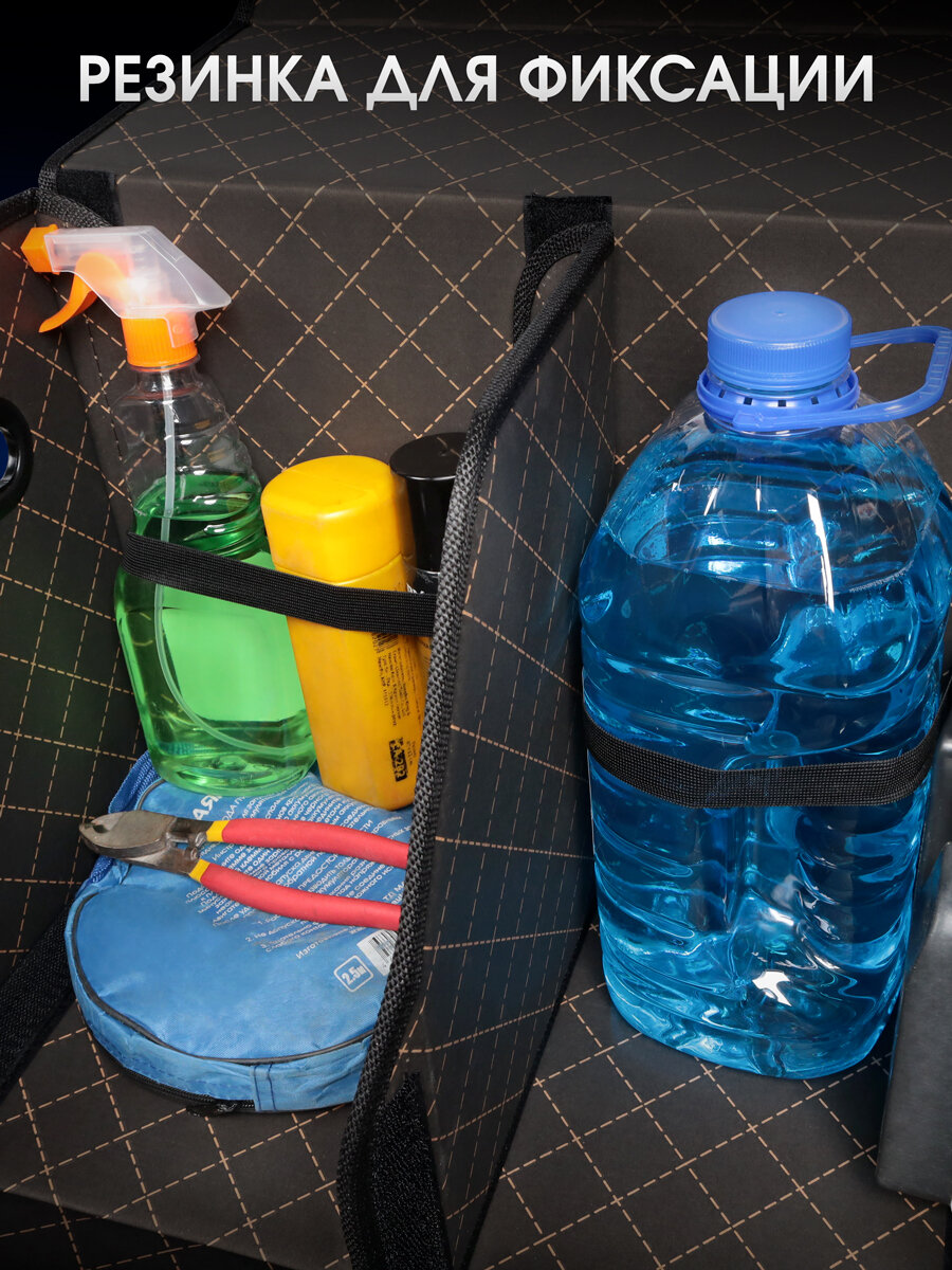 Органайзер в багажник автомобиля. Бокс для хранения в авто 50*35*30. Чёрный/бежевая строчка