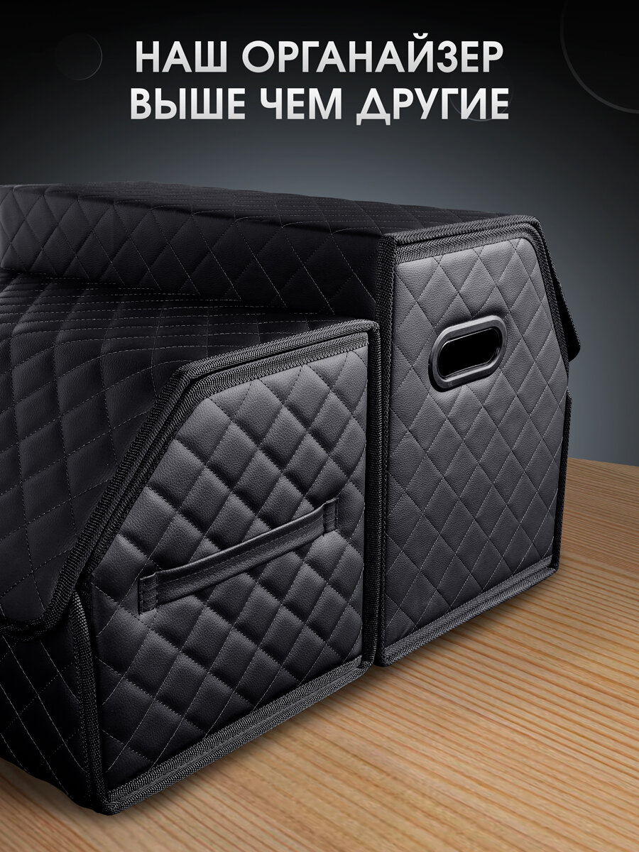 Органайзер в багажник автомобиля. Бокс для хранения в авто 50*35*30. Чёрный/бежевая строчка