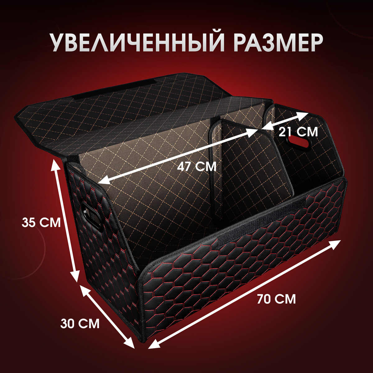 Органайзер в багажник автомобиля. Бокс для хранения в авто 70*35*30. Черный/красная строчка