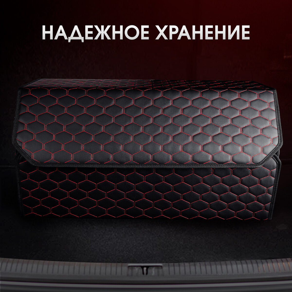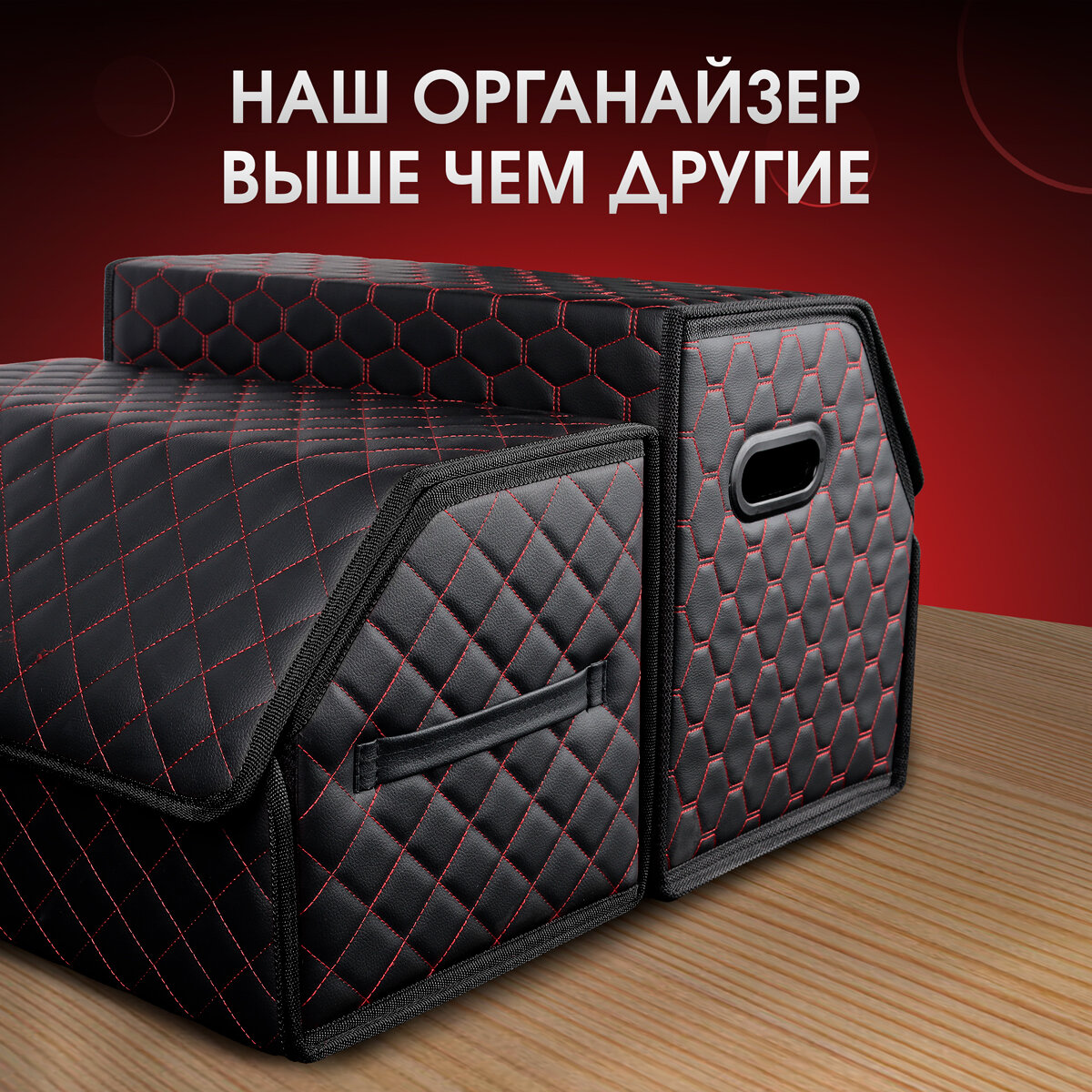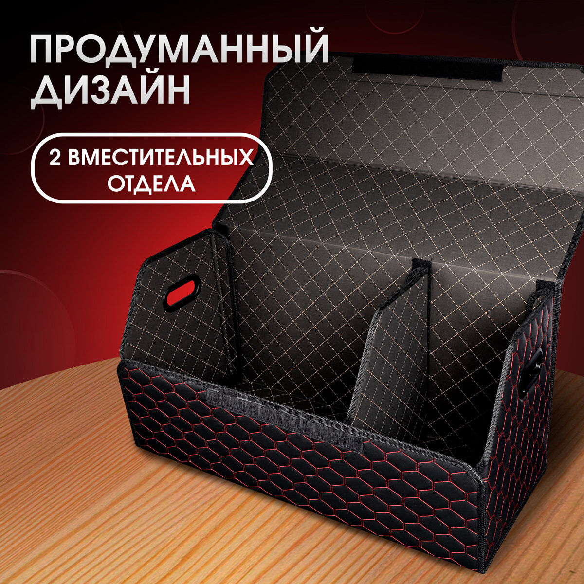Органайзер в багажник автомобиля. Бокс для хранения в авто 50*35*30. Чёрный/красная строчка