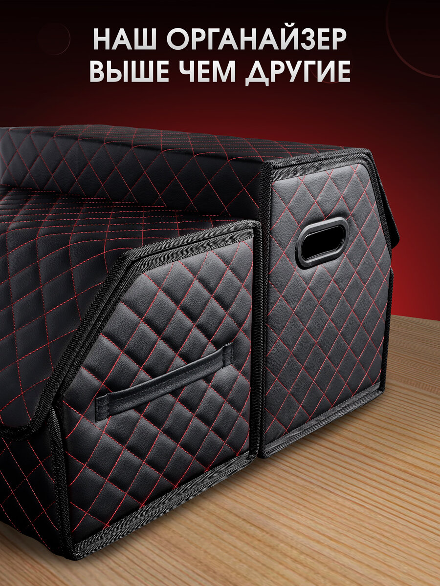 Органайзер в багажник автомобиля. Бокс для хранения в авто 50*35*30. Чёрный/красная строчка