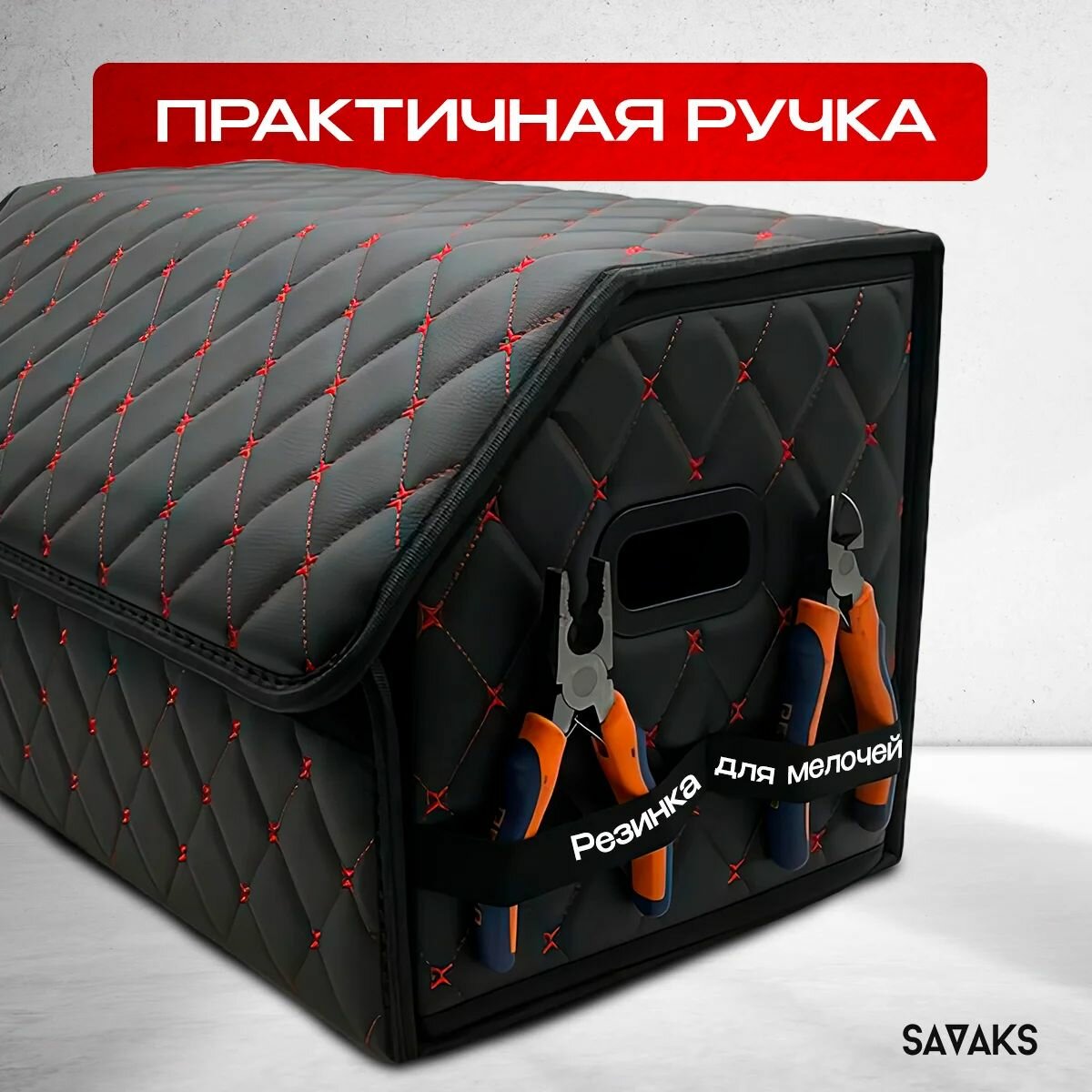 Купить Органайзер в багажник автомобиля 50х30 см с пластиковой ручкой, черный с красной строчкой
