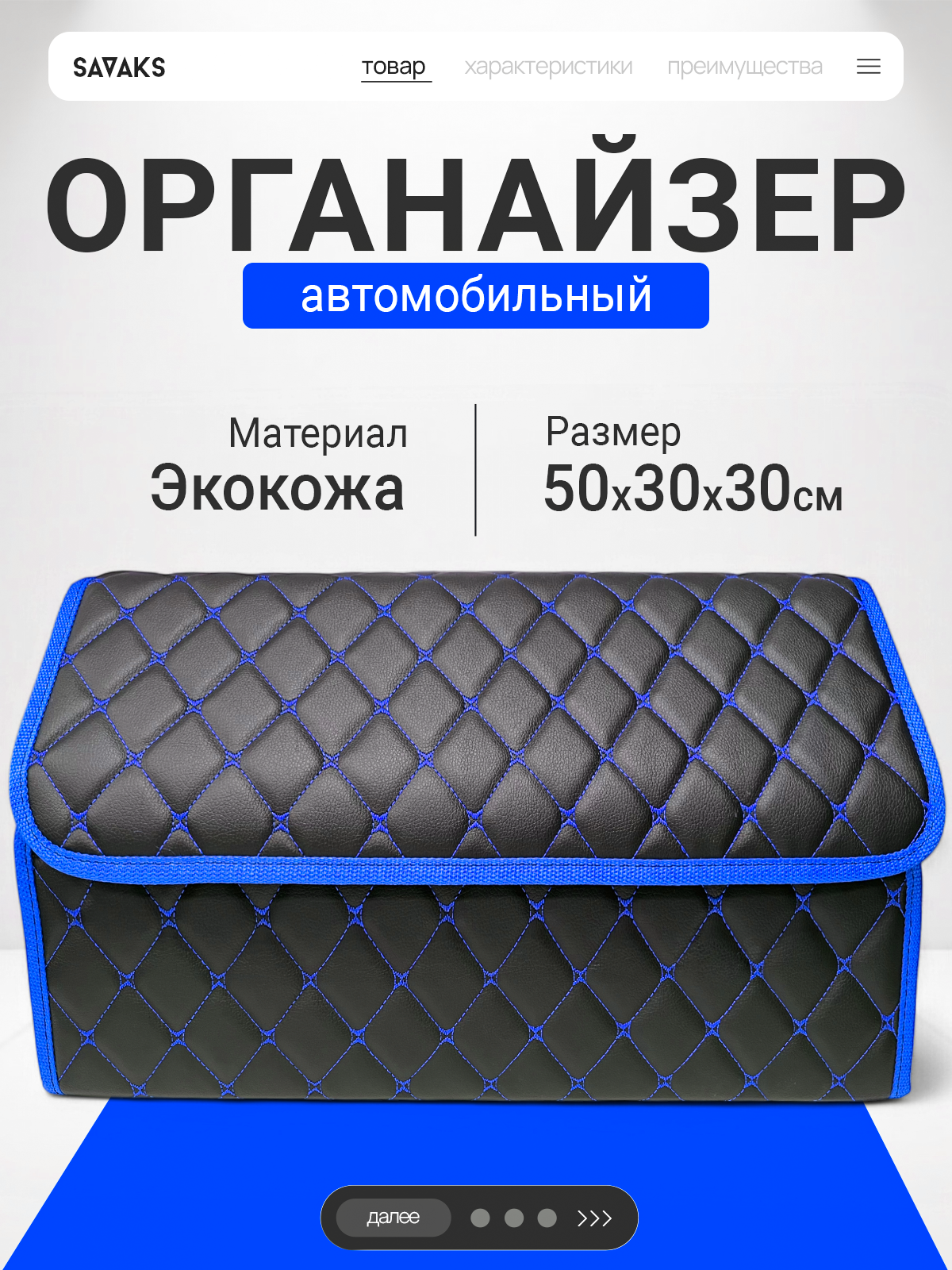 СохранитьОрганайзер в багажник автомобиля 50х30, складной, чёрный с синей окантовкой интересное: