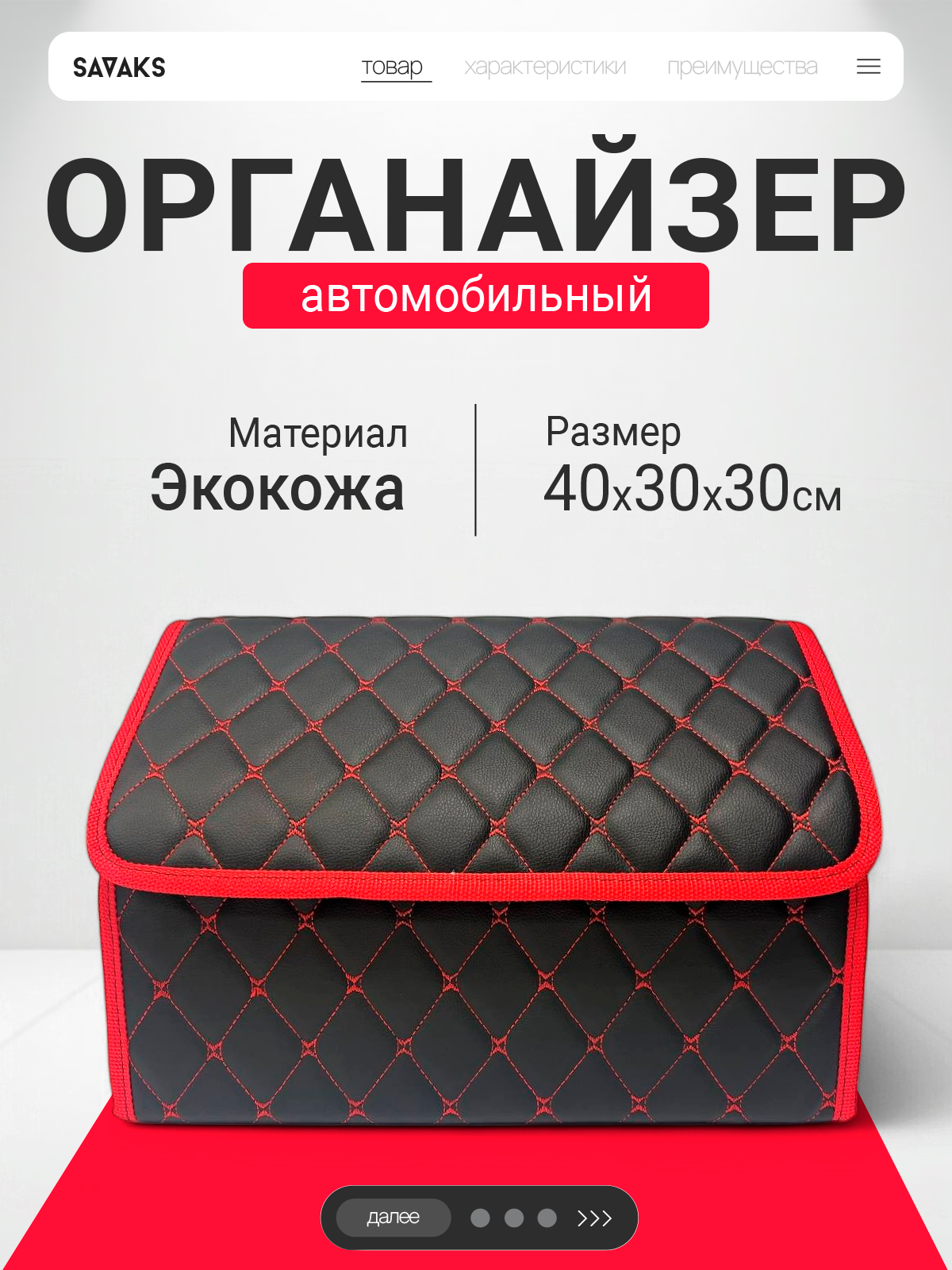 СохранитьОрганайзер в багажник автомобиля 40х30, складной, черный с красной окантовкой интересное: