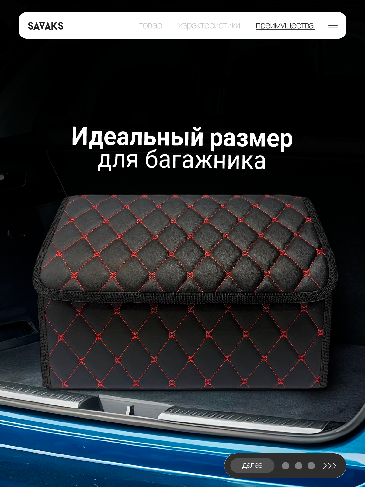 Саквояж в багажник автомобильный эко кожа черная синий ромб, объем 45 л