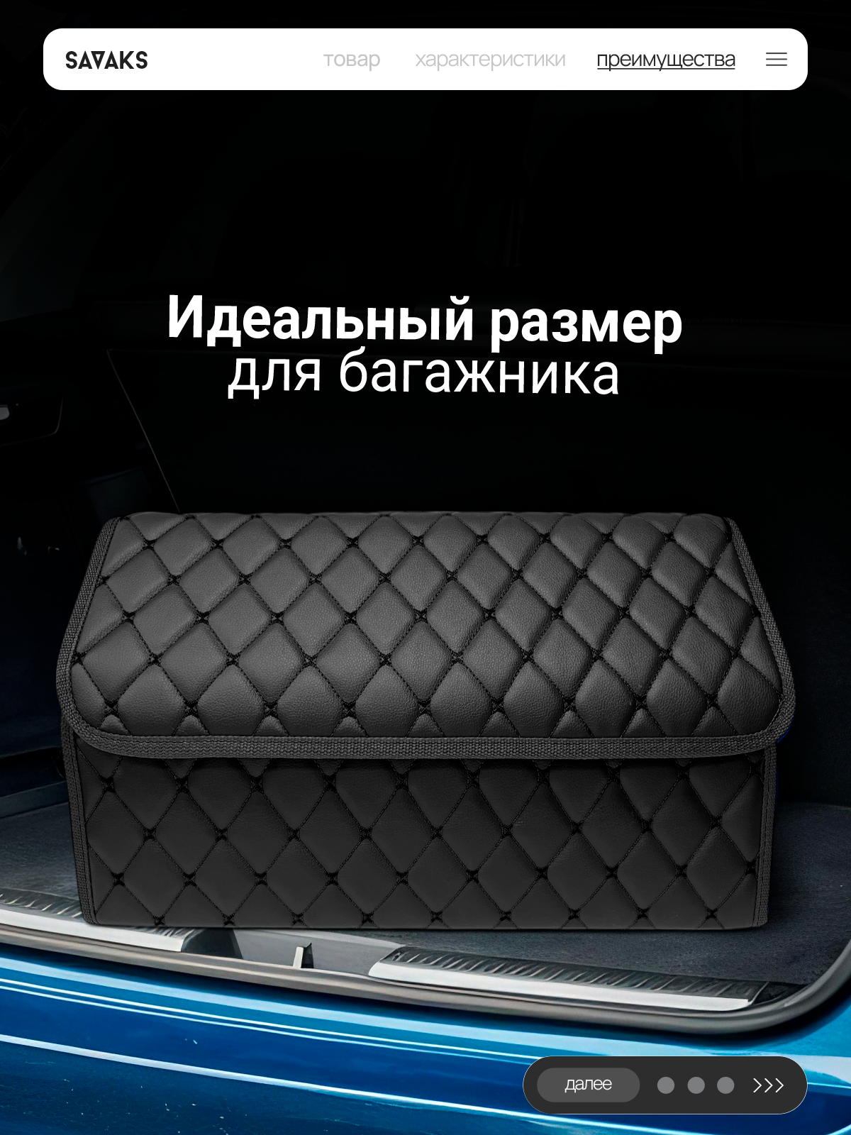 Саквояж в багажник автомобильный эко кожа черная синий ромб, объем 45 л