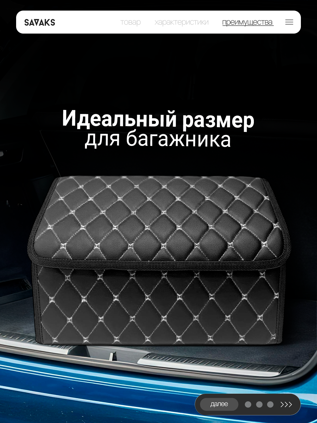 Саквояж в багажник автомобильный эко кожа черная синий ромб, объем 45 л