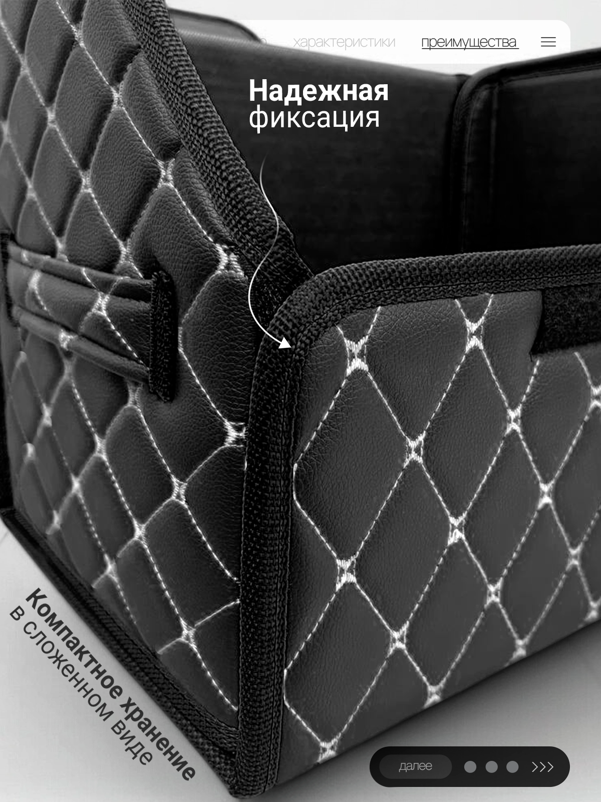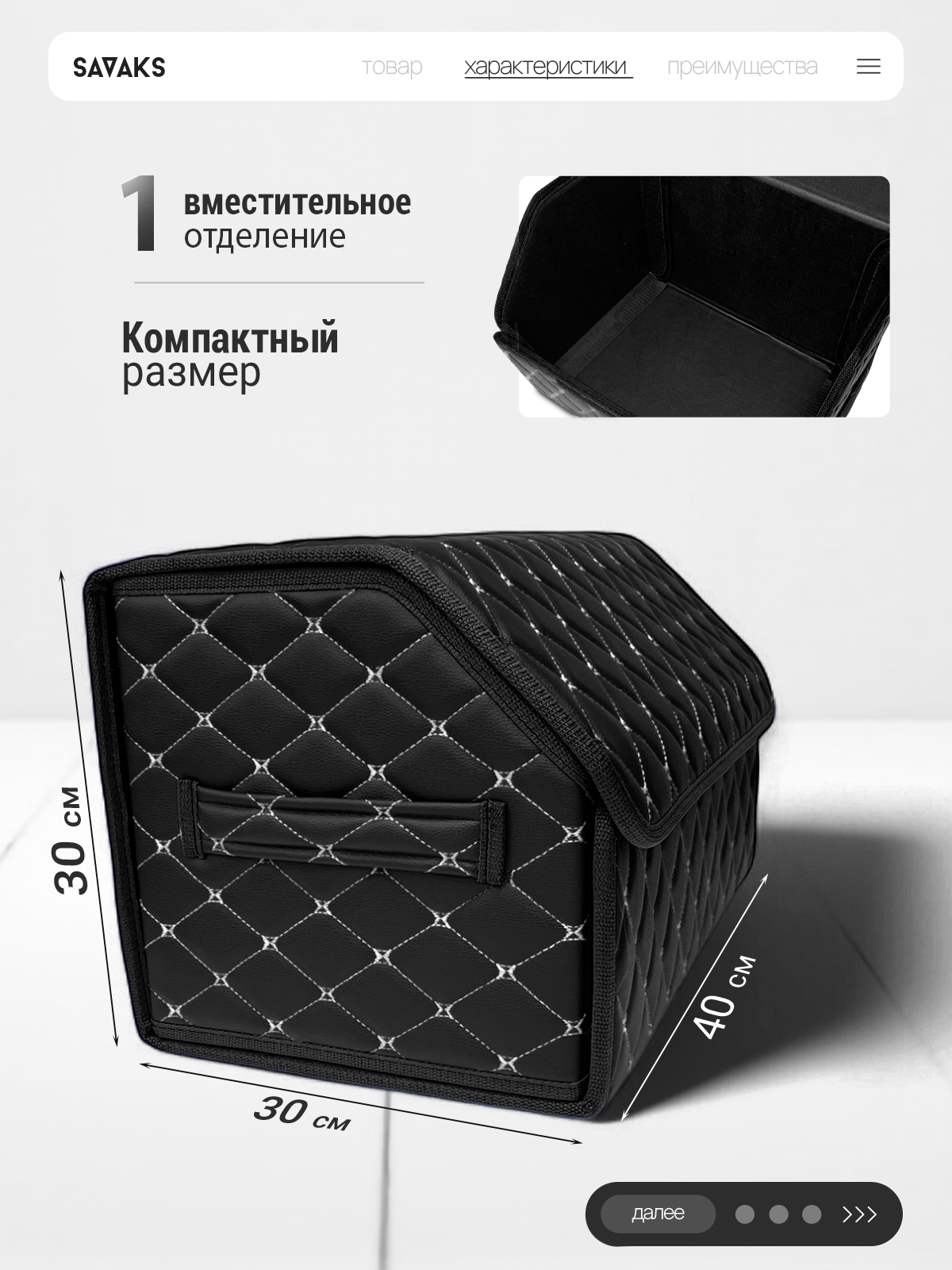 СохранитьОрганайзер в багажник автомобиля 40х30, складной, черный с белой строчкой интересное: