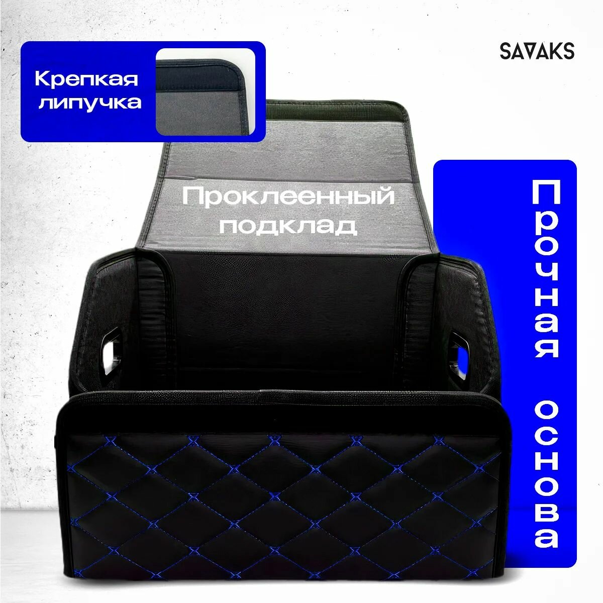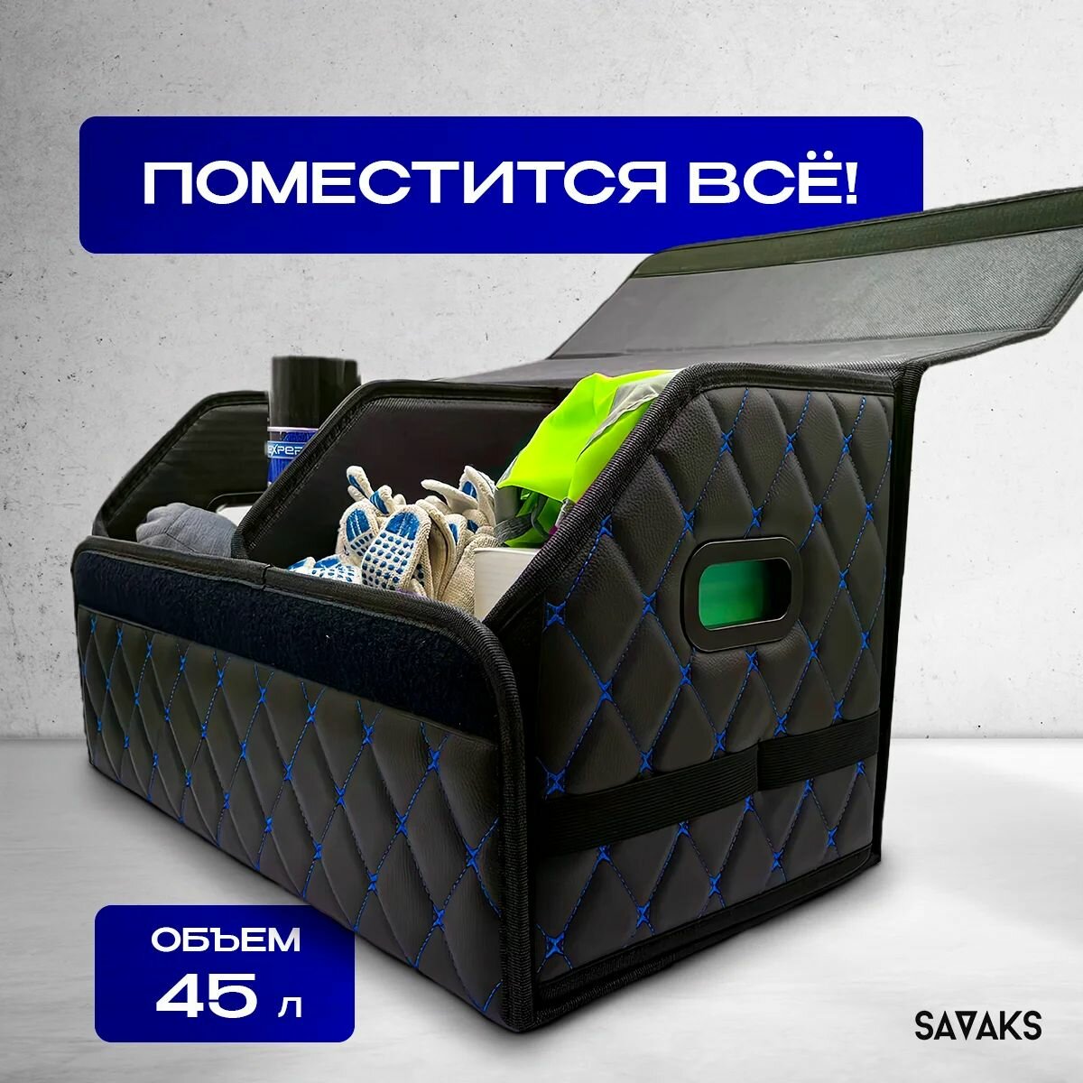 СохранитьОрганайзер в багажник автомобиля 50х30 см с пластиковой ручкой, черный с синей строчкой интересное:
