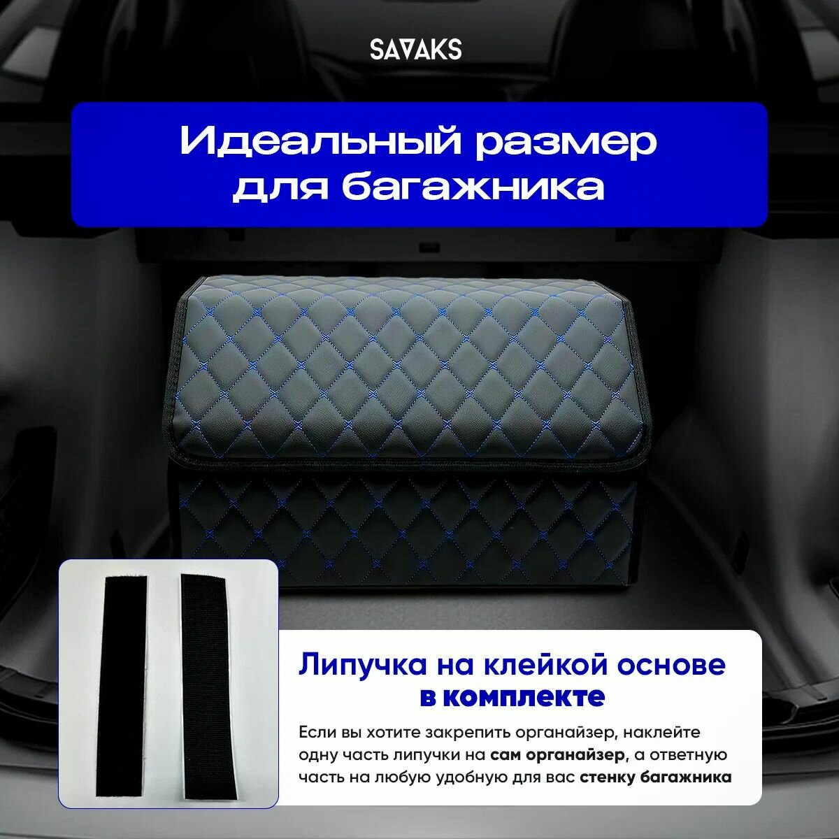 Органайзер в багажник автомобиля 70х30, складной, черный с синей окантовкой