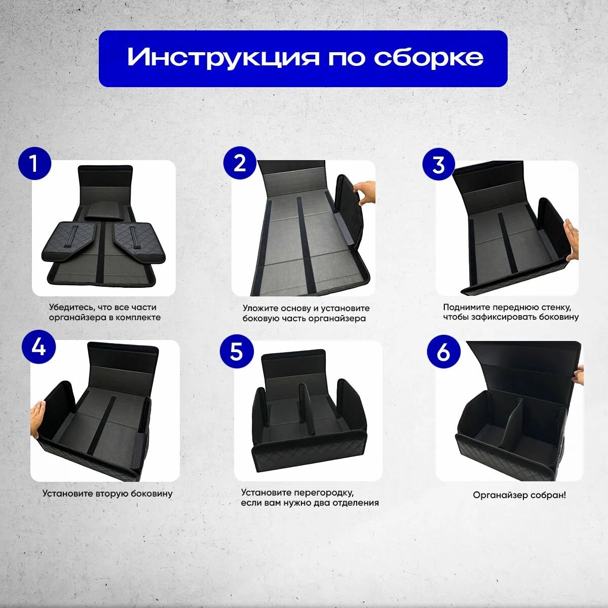 Органайзер в багажник автомобиля 50х30, складной, черный с синей строчкой