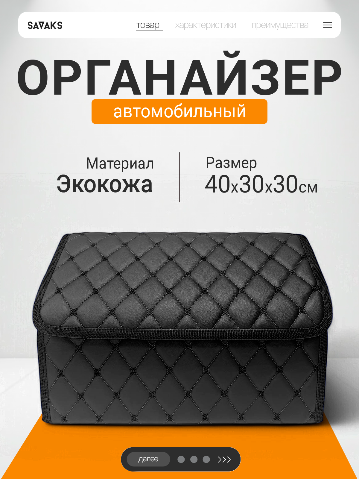 СохранитьОрганайзер в багажник автомобиля 40х30, складной, черный с черной строчкой интересное: