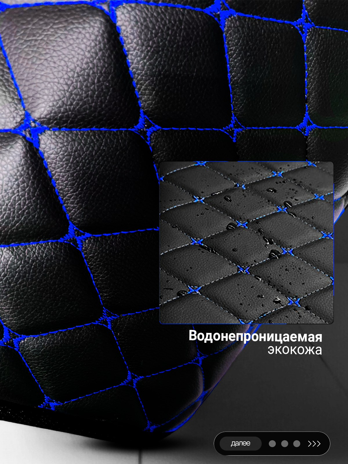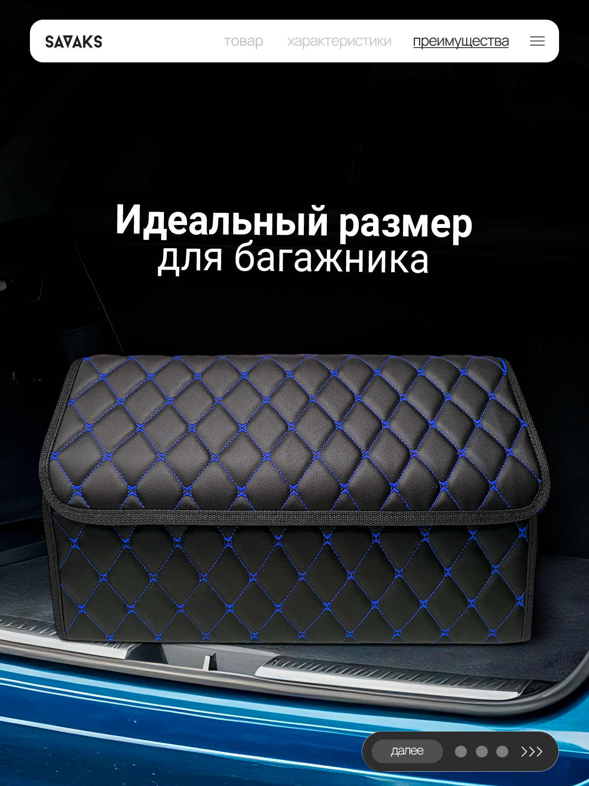 Саквояж в багажник автомобильный эко кожа черная синий ромб, объем 45 л