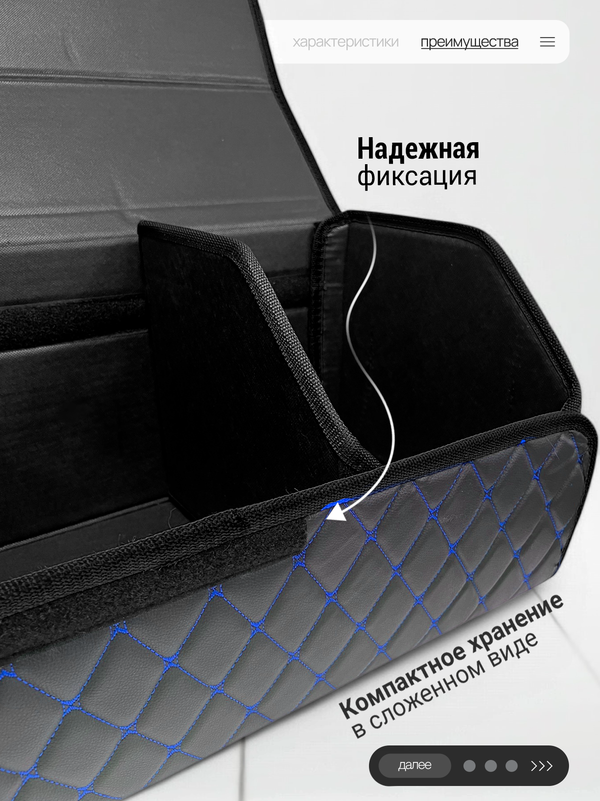 СохранитьОрганайзер в багажник автомобиля 50х30, складной, черный с синей строчкой интересное: