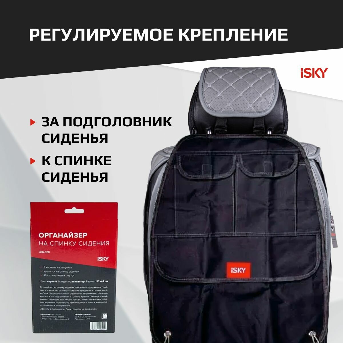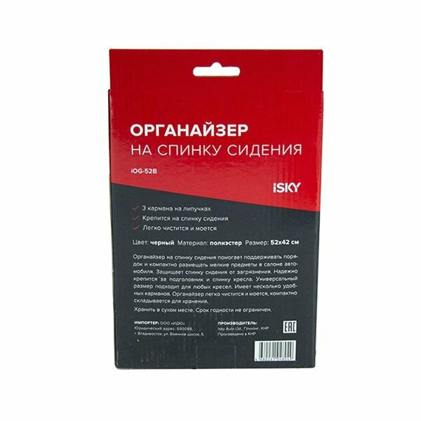 Органайзер на спинку переднего сиденья iSky, полиэстер, 52x42 см, черный арт. iOG-52B интересное: