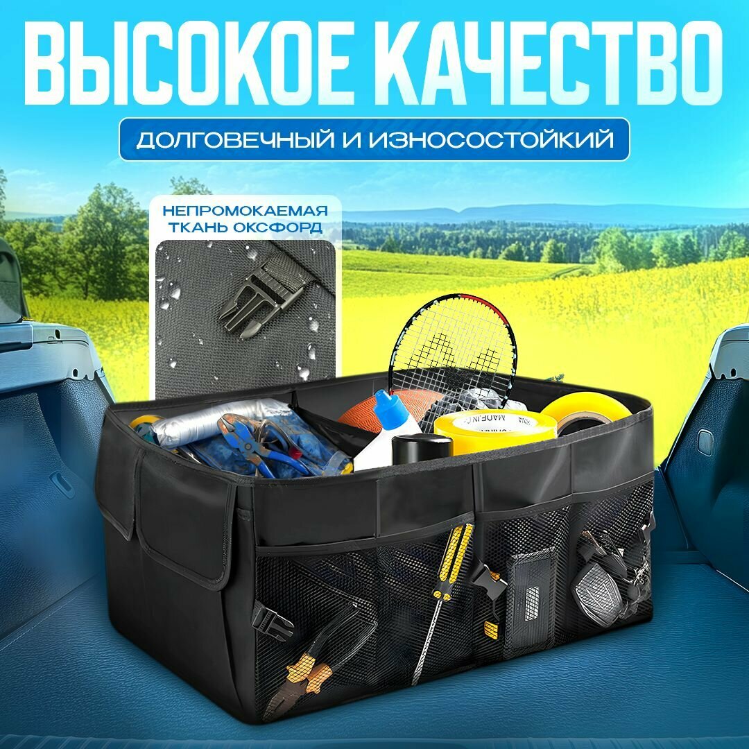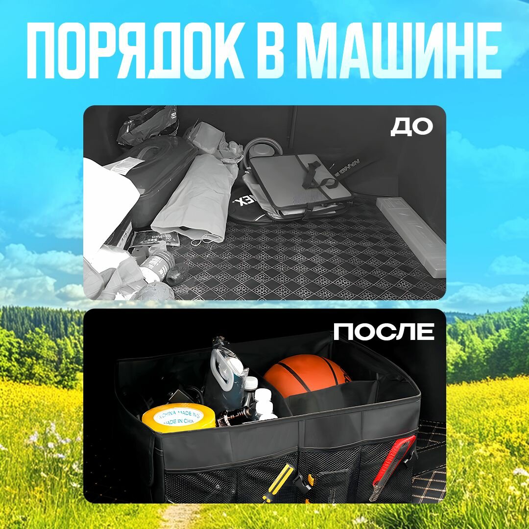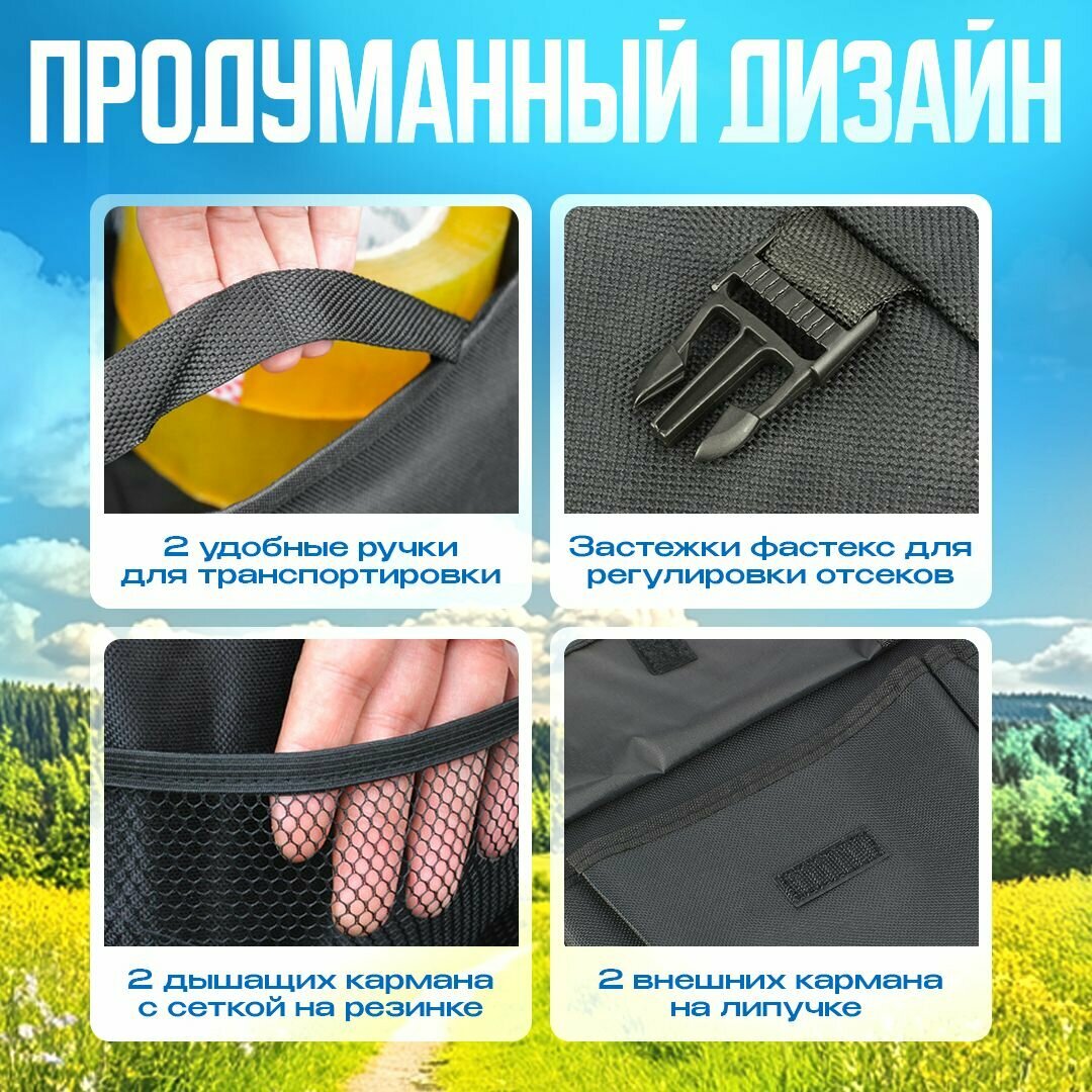 Органайзер в багажник для автомобиля складной 52*38*25,5 см, черный интересное: