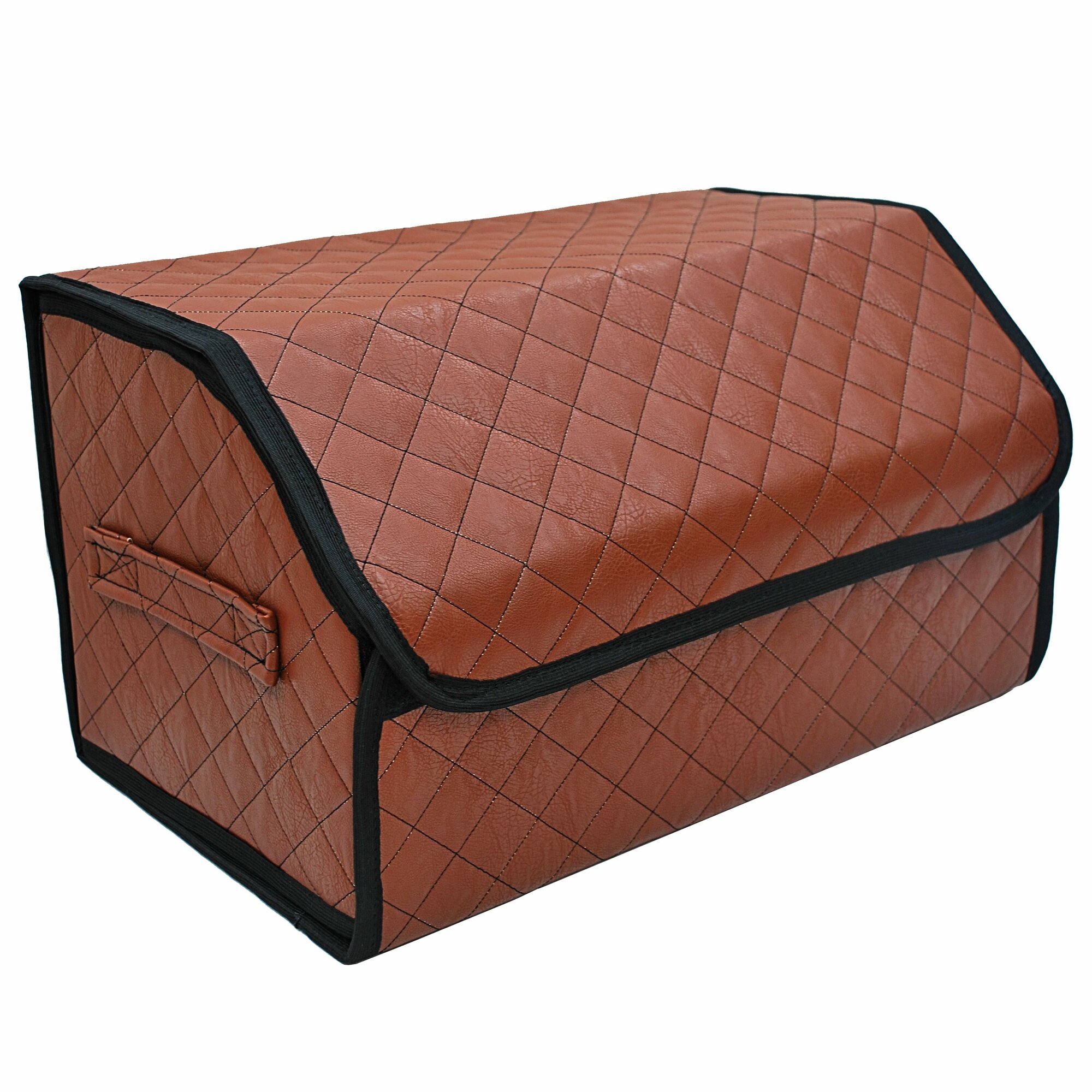 Купить Саквояж в багажник автомобильный эко кожа коричневая черный ромб, объем 45 л