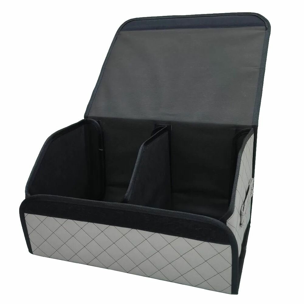 Купить Саквояж в багажник автомобильный эко кожа серая черный ромб, объем 45 л