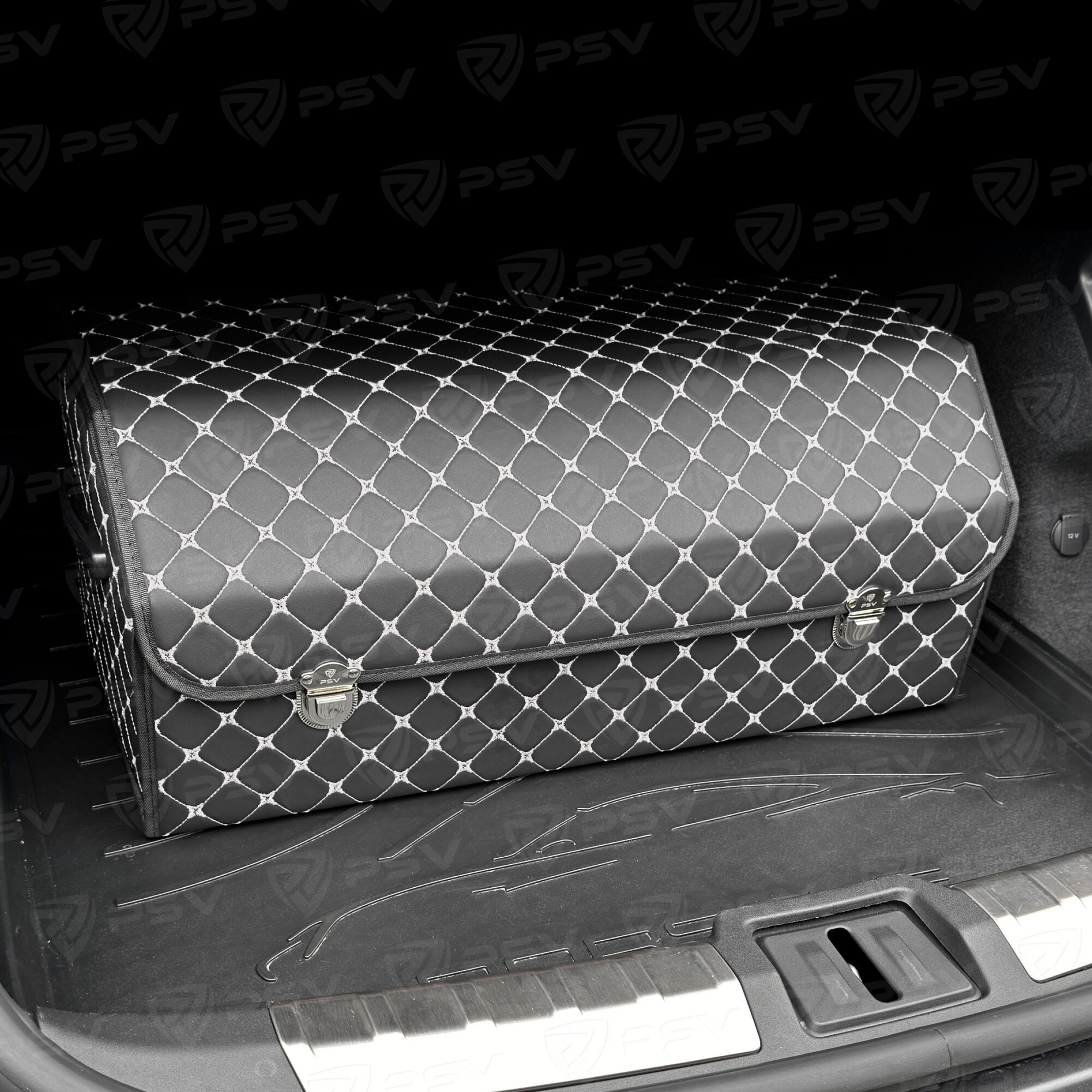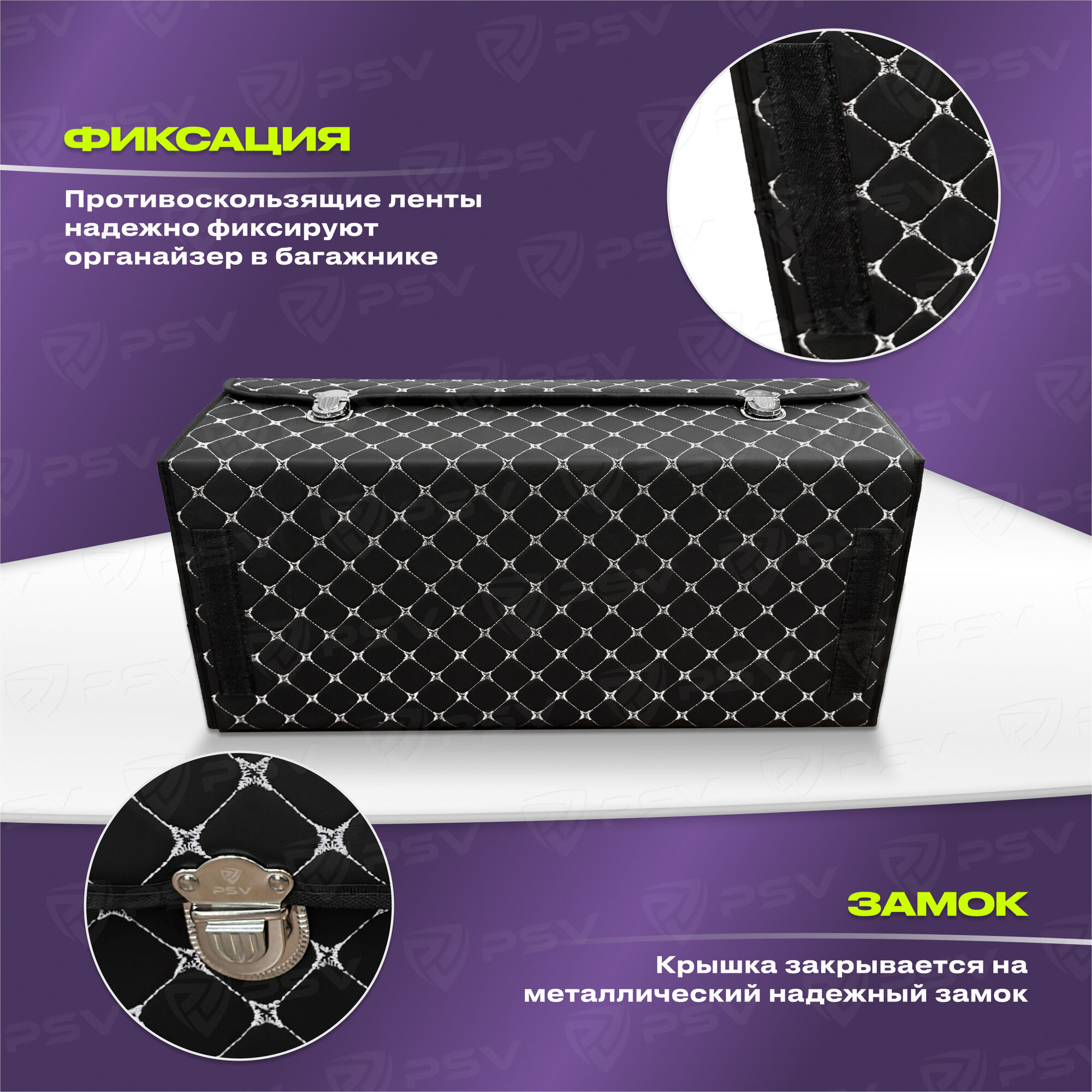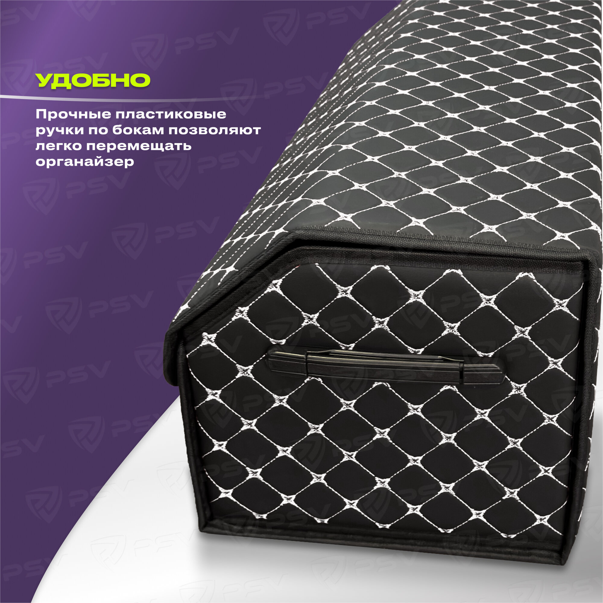 Купить Сумка-органайзер в машину 3D PSV черно-белая, экокожа, XL - 30х30х70см