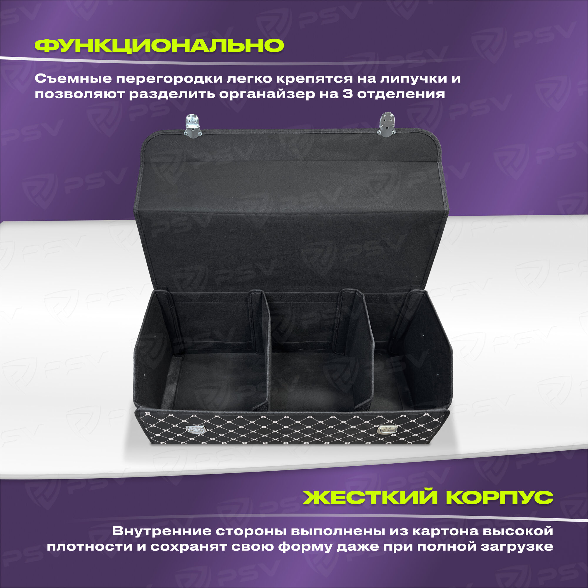 Сумка-органайзер в машину 3D PSV черная экокожа, XL - 30х30х70см