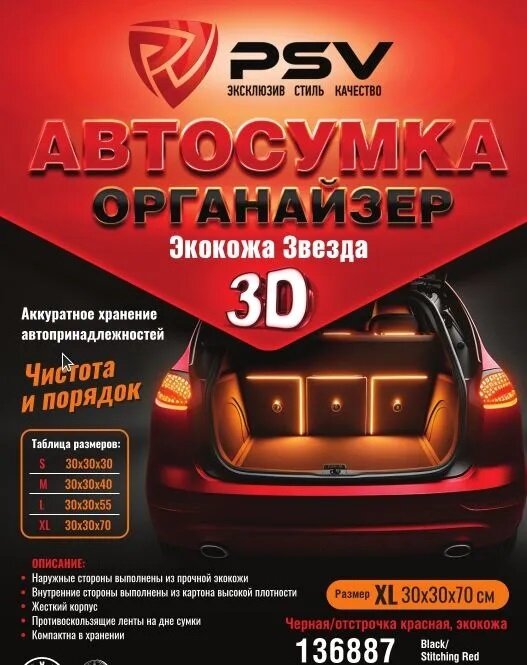 СохранитьСумка-органайзер в машину 3D PSV черно-красная, экокожа, XL - 30х30х70см интересное:
