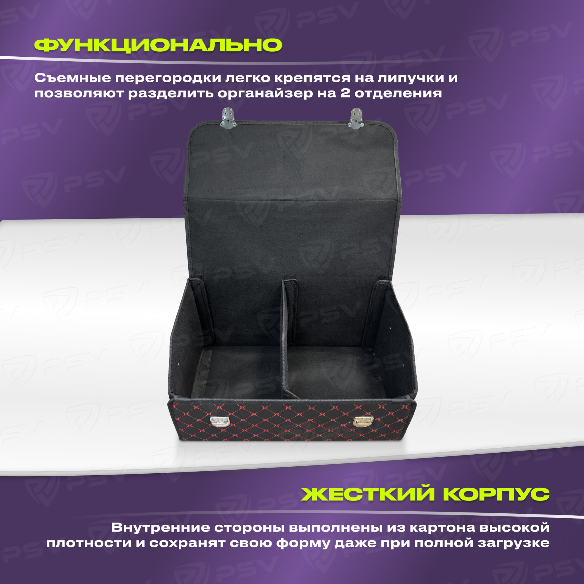 Сумка-органайзер в машину 3D PSV черно-красная, экокожа, XL - 30х30х70см