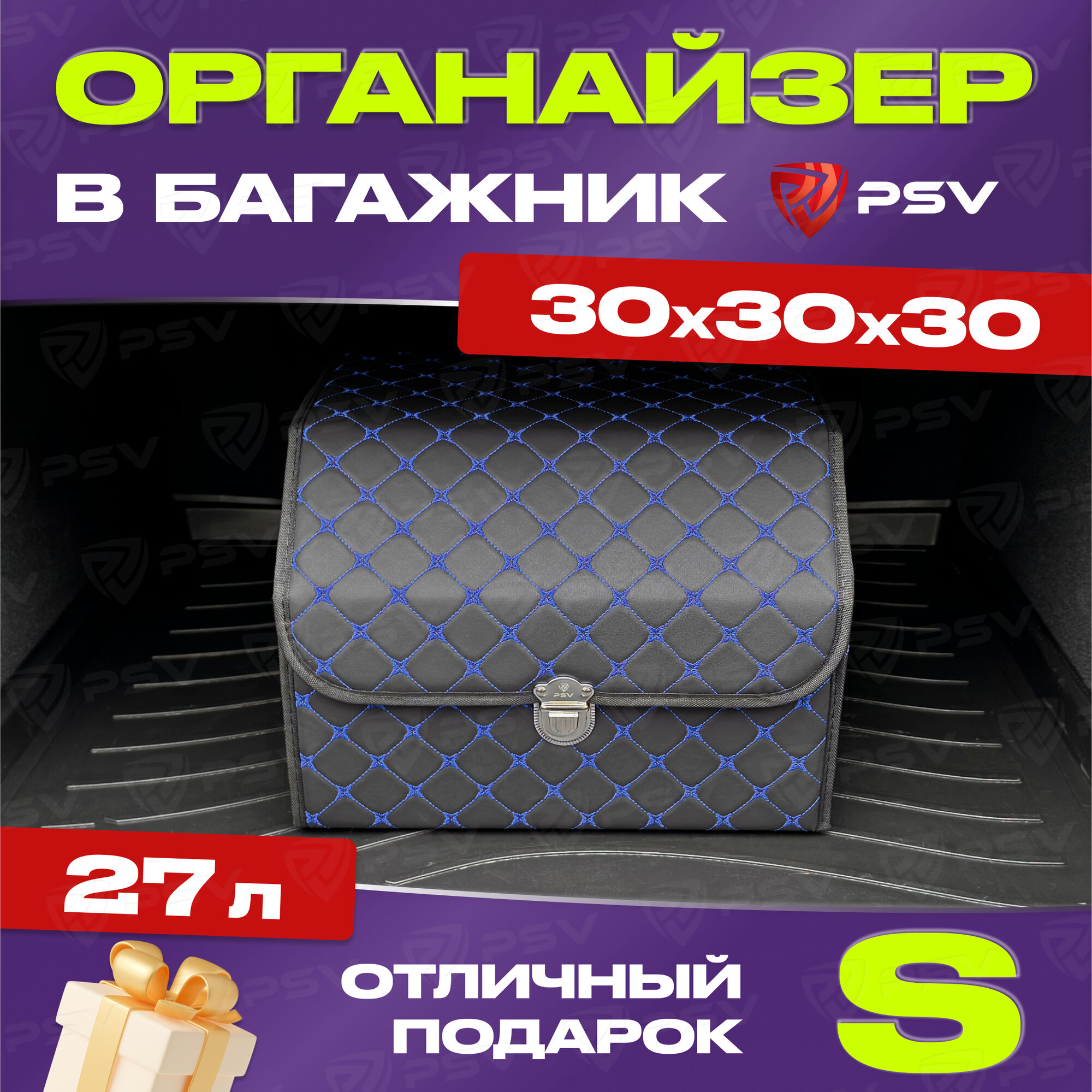 Саквояж в багажник автомобильный эко кожа черная синий ромб, объем 45 л