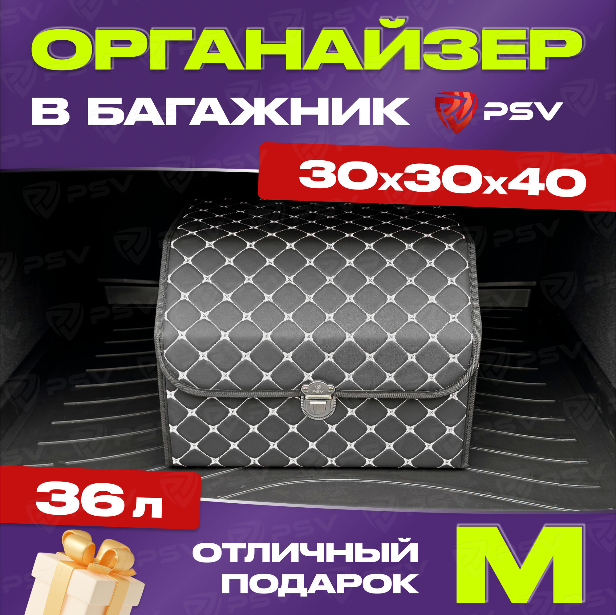Сумка-органайзер в машину 3D PSV черно-белая, экокожа, M - 30х30х40 см интересное: