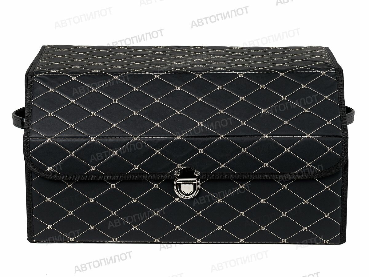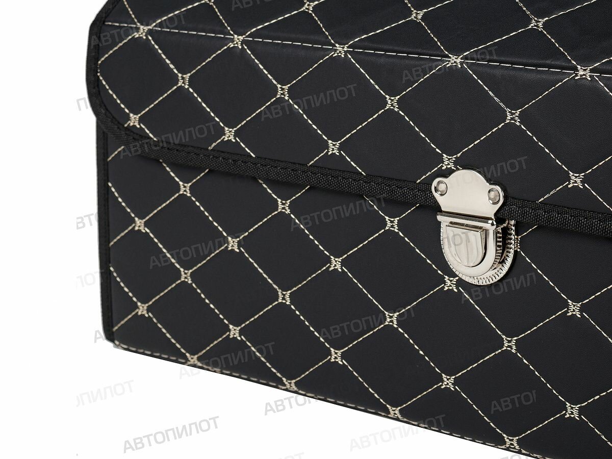 Саквояж в багажник автомобильный эко кожа черная синий ромб, объем 45 л