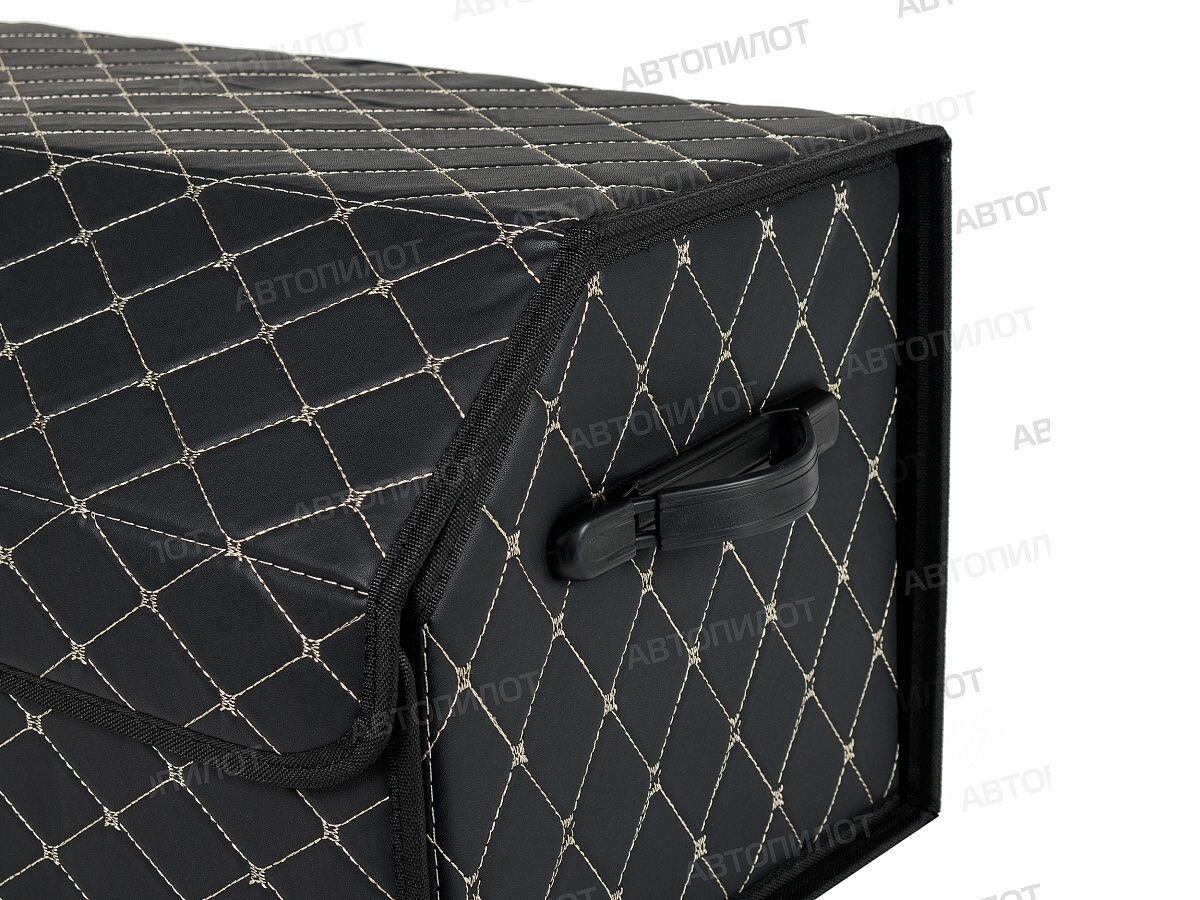 Сумка-органайзер в багажник Ауди с4 (2002 - 2004) универсал 5 дверей / Audi S4, экокожа , Черный с бежевой строчкой, Размер М:30x30x55см интересное:
