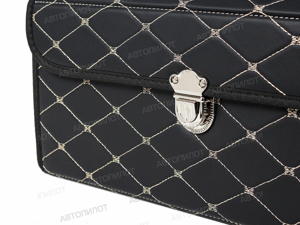 Сумка-органайзер в багажник Сузуки Солио (2011 - 2013) микровэн / Suzuki Solio, экокожа , Черный с бежевой строчкой, Размер: 30x30x45см интересное: