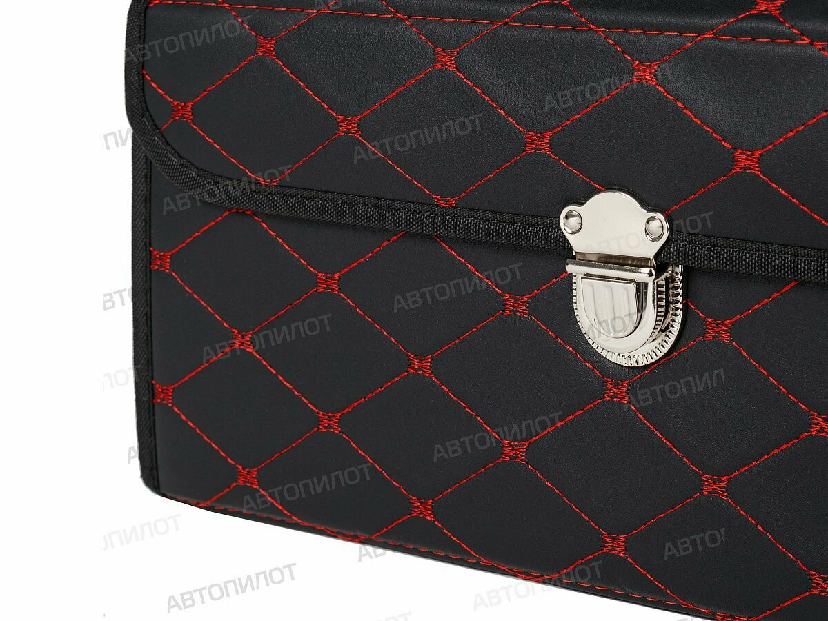 Сумка-органайзер в багажник Сузуки Солио (2011 - 2013) микровэн / Suzuki Solio, экокожа , Черный с красной строчкой, Размер: 30x30x45см интересное: