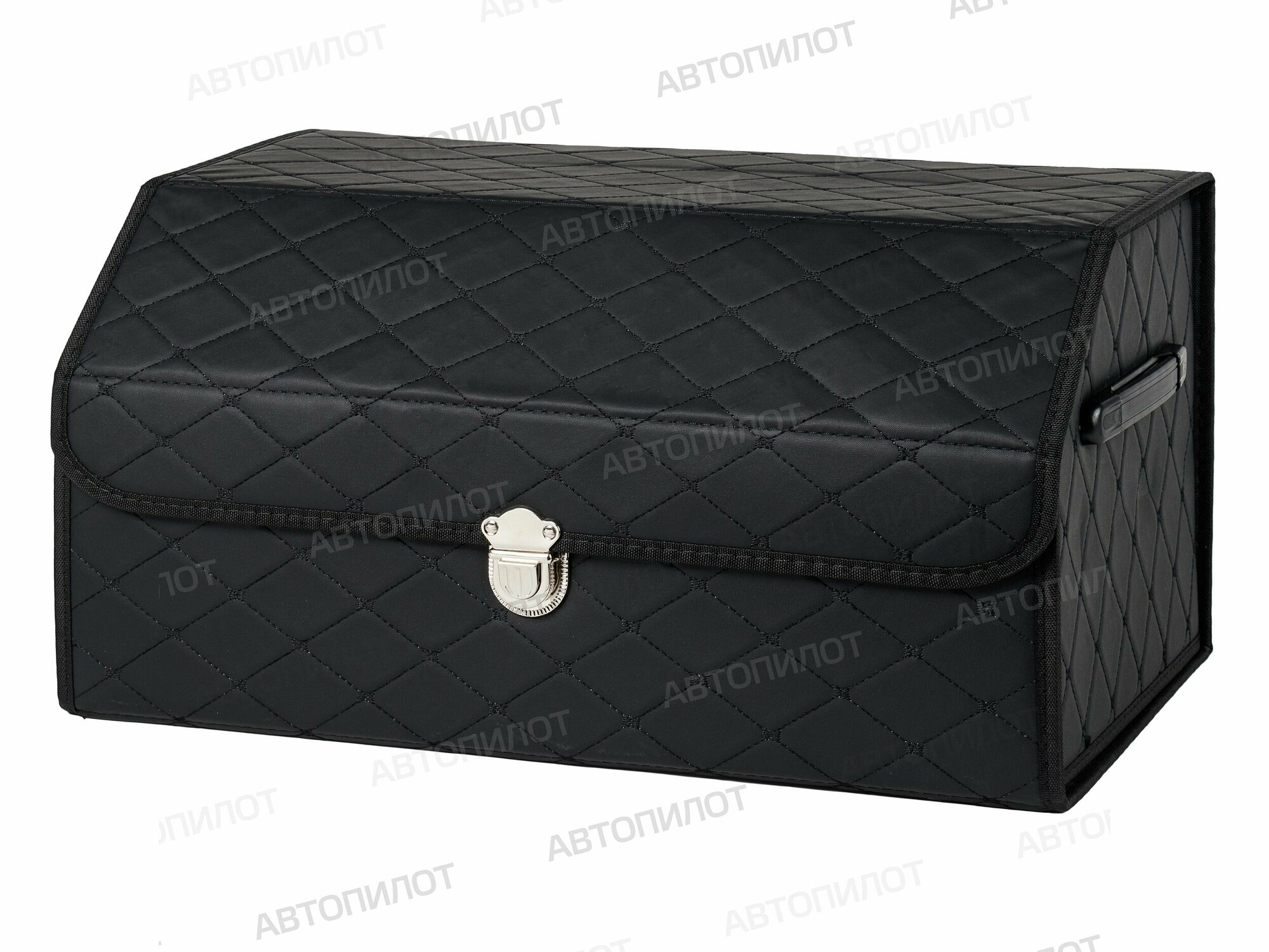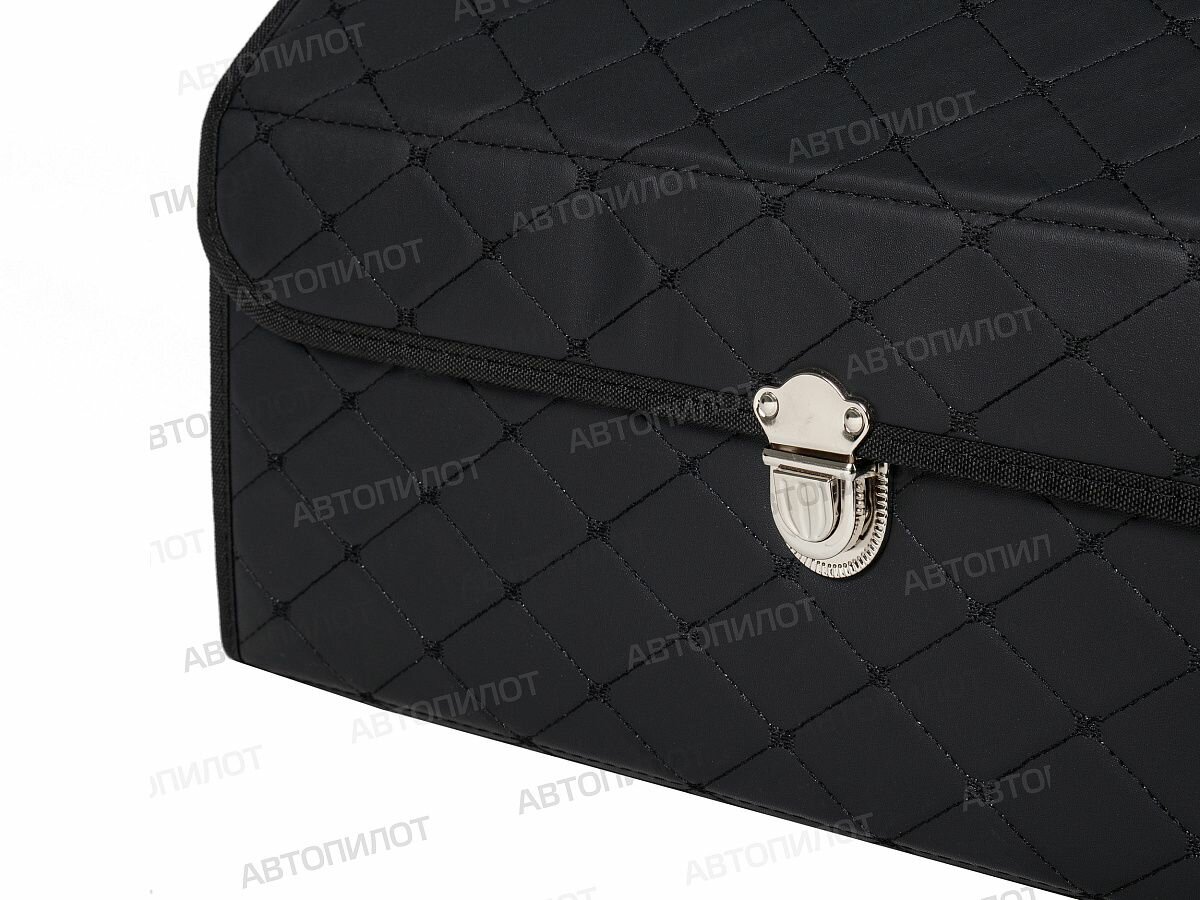 Саквояж в багажник автомобильный эко кожа черная синий ромб, объем 45 л