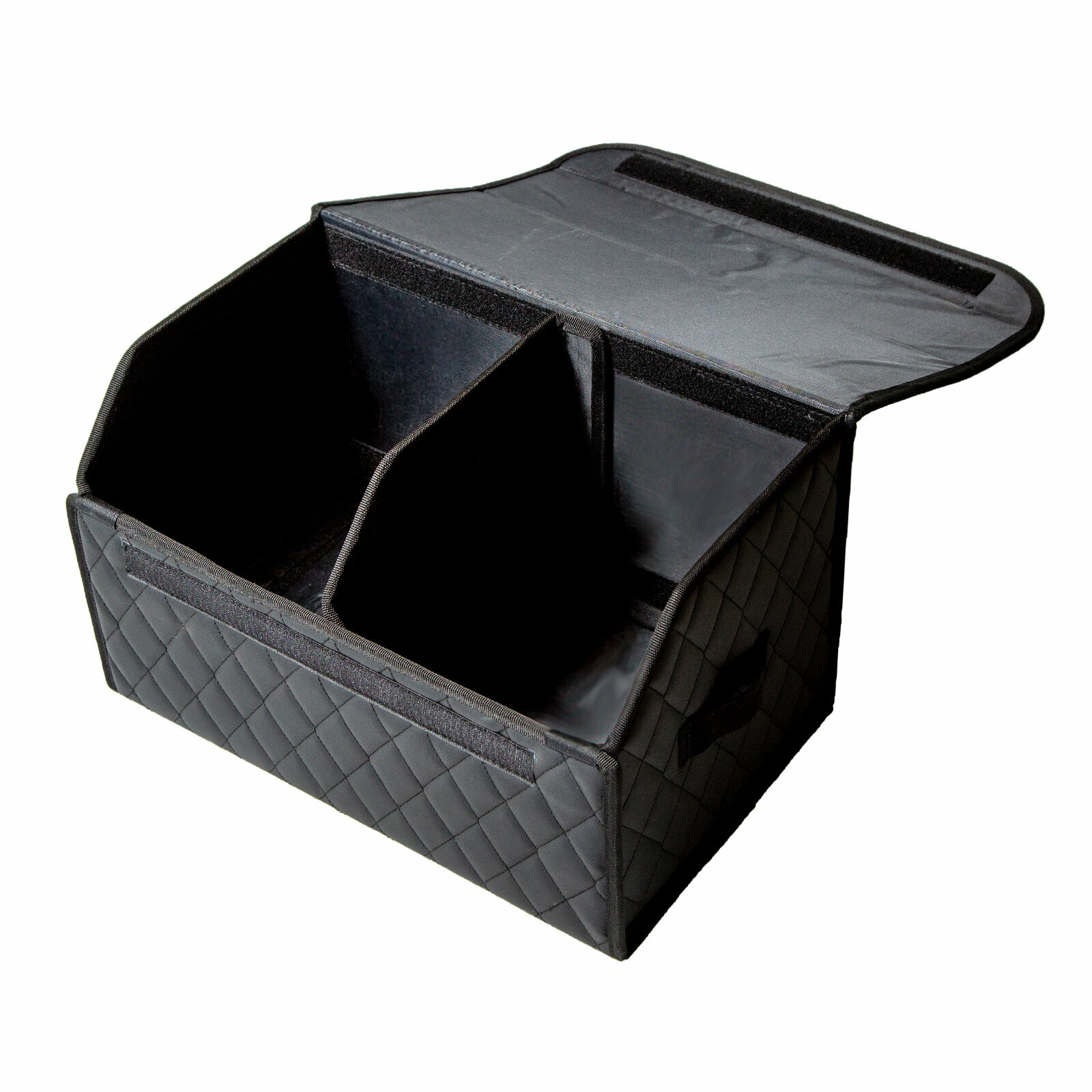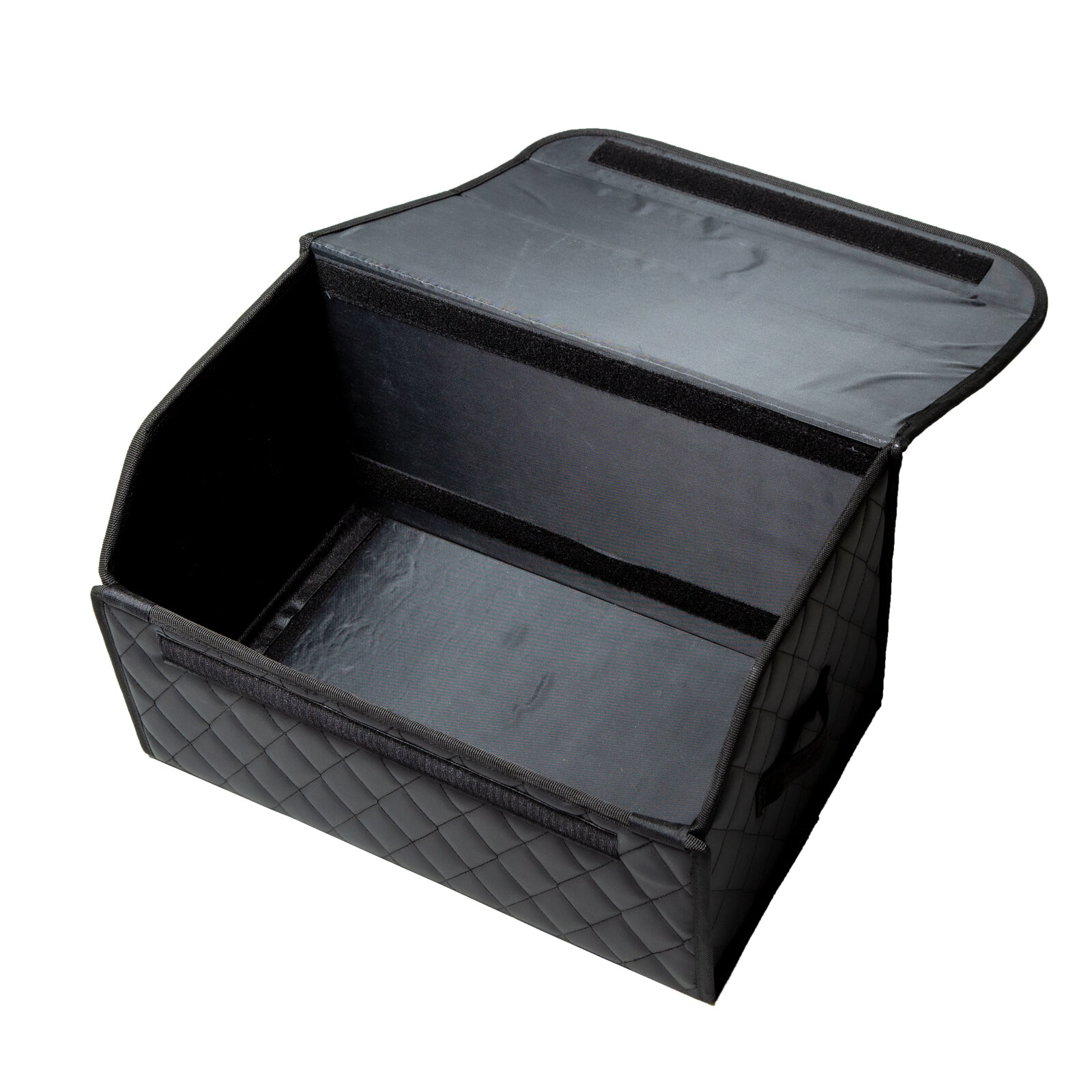 Саквояж в багажник автомобильный эко кожа черная синий ромб, объем 45 л