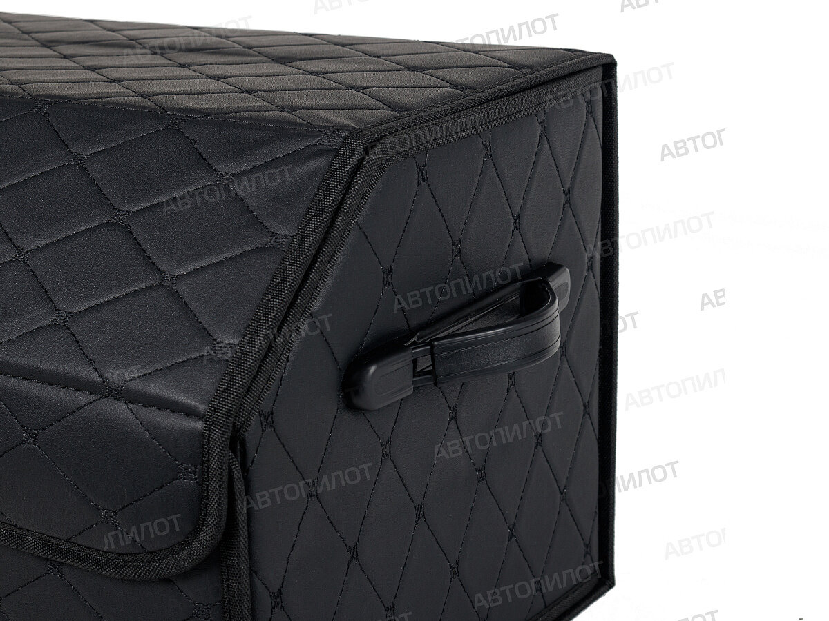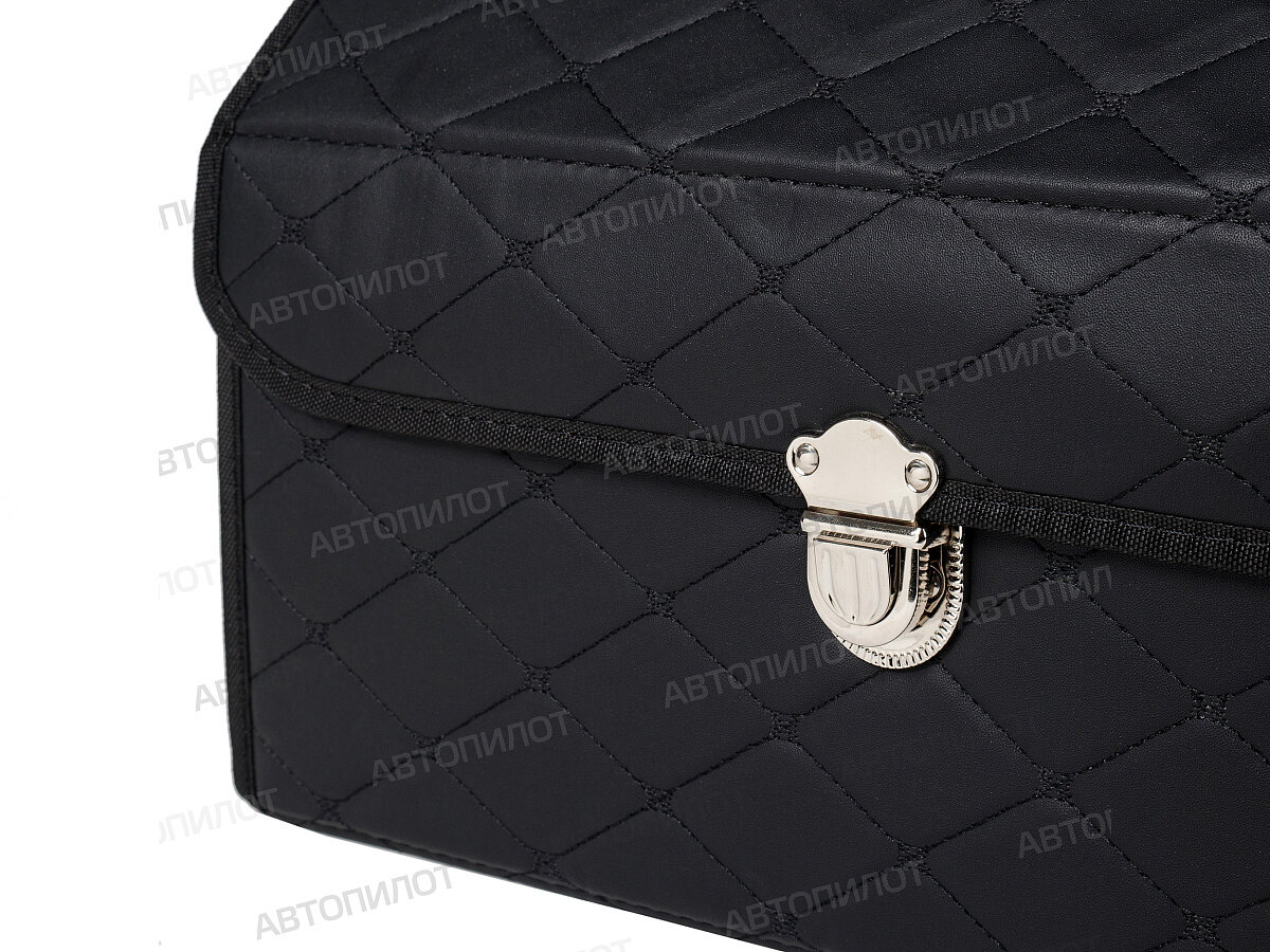 Саквояж в багажник автомобильный эко кожа черная синий ромб, объем 45 л