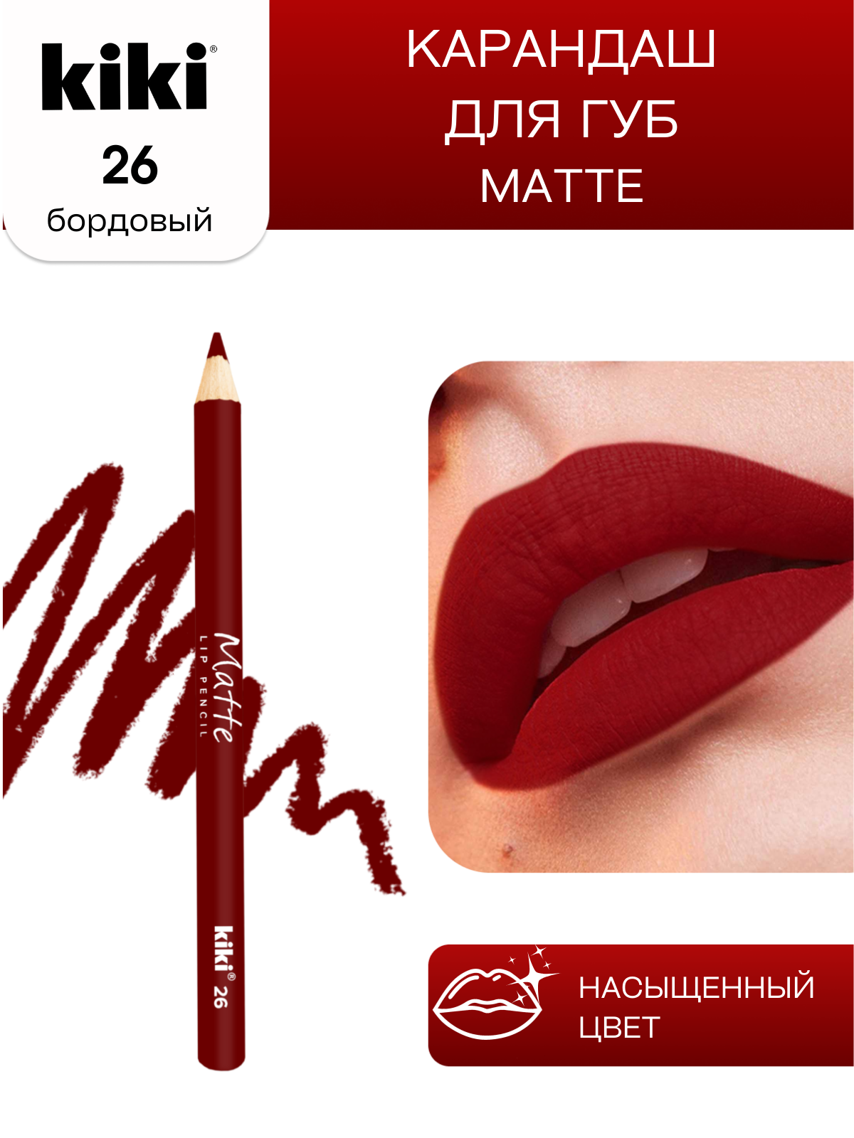 kiki Карандаш для губ, Matte, 26, Бордовый