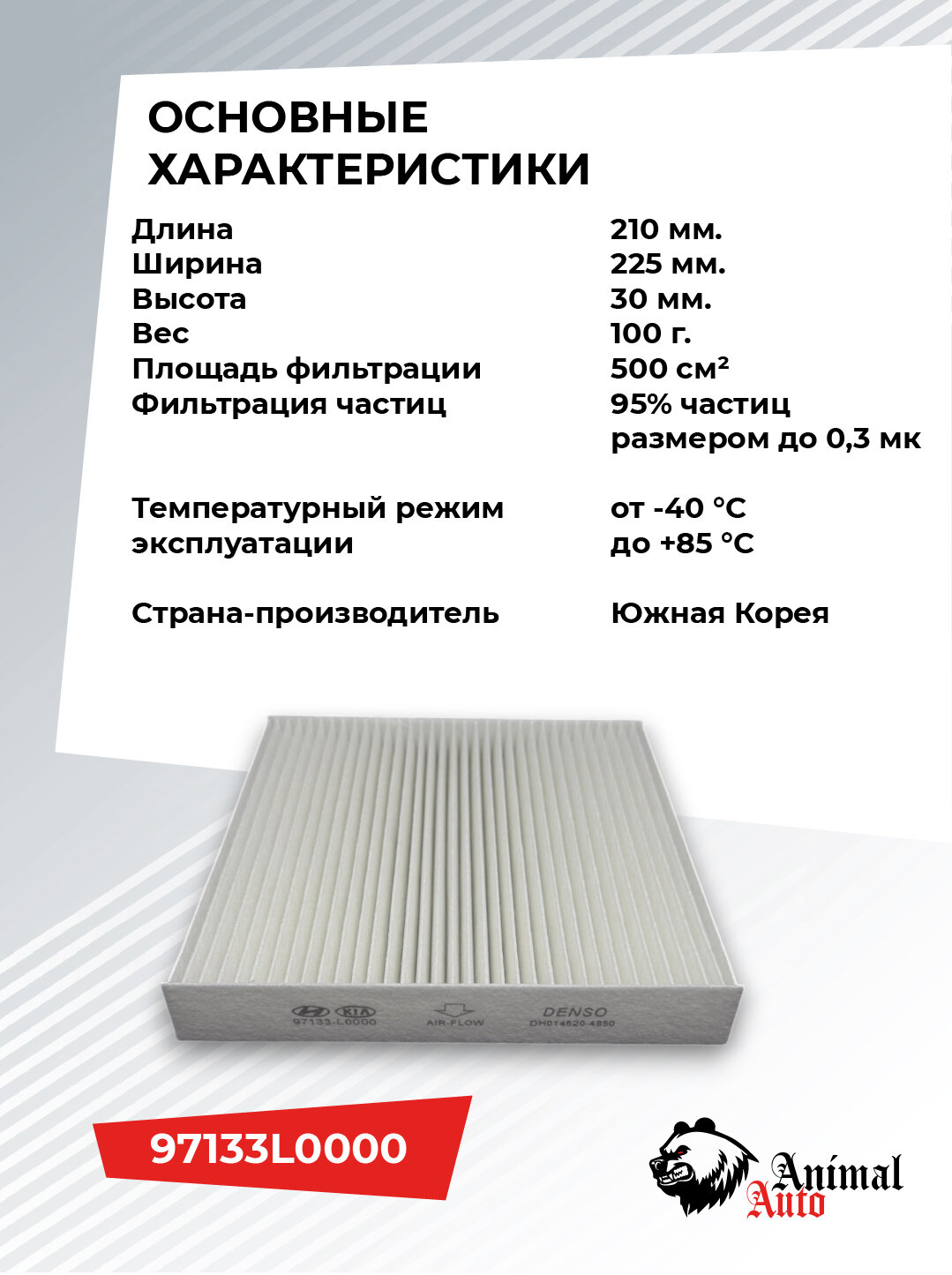 Фильтр салонный 97133L0000 на Hyundai Elantra, Santa Fe, Sonata, Tucson; Kia K5, K8, Sorento, Sportage интересное: