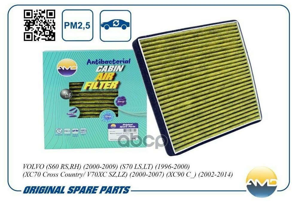 Фильтр салонный 30630752 AMD. FC794A антибактериальный, угольный для VOLVO S60 S70 S80 V70 XC70 интересное: