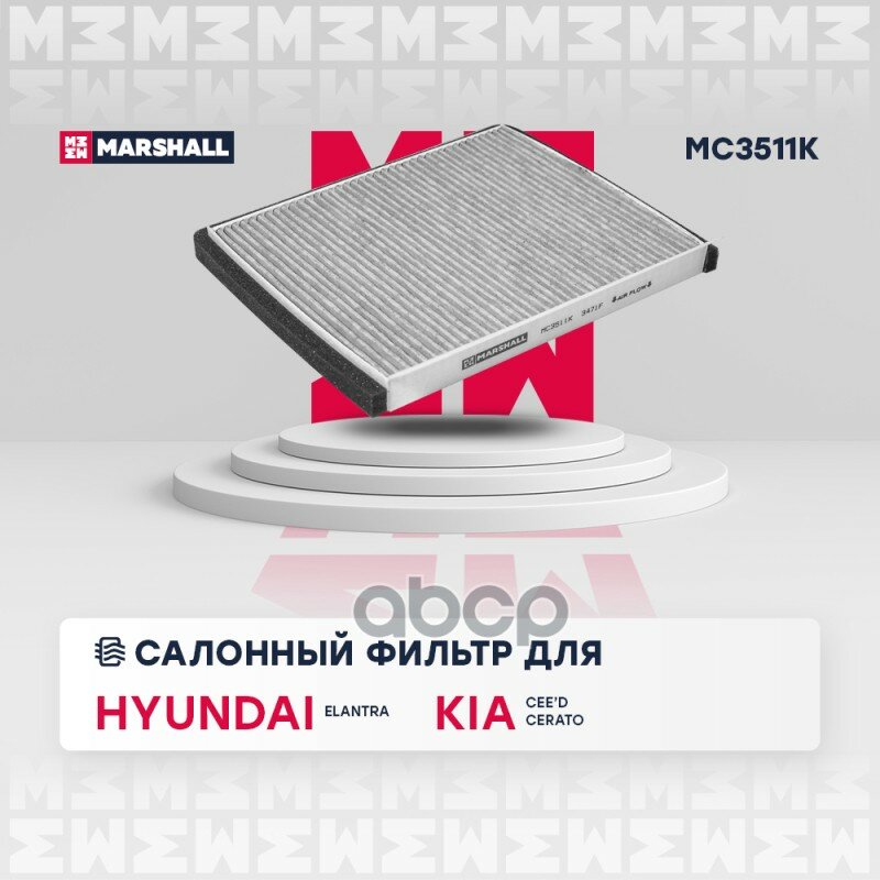 Купить Фильтр салонный угольный Hyundai Elantra IV-VI 05- Kia Cee'd II III 12- Cerato III 16- () Marshall MC3511K