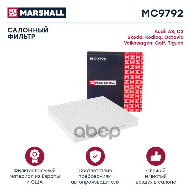 Купить Фильтр салонный Audi A3 (8V 8Y) 12- Skoda Octavia III IV 13- VW Tiguan II 16- () Marshall MC9792