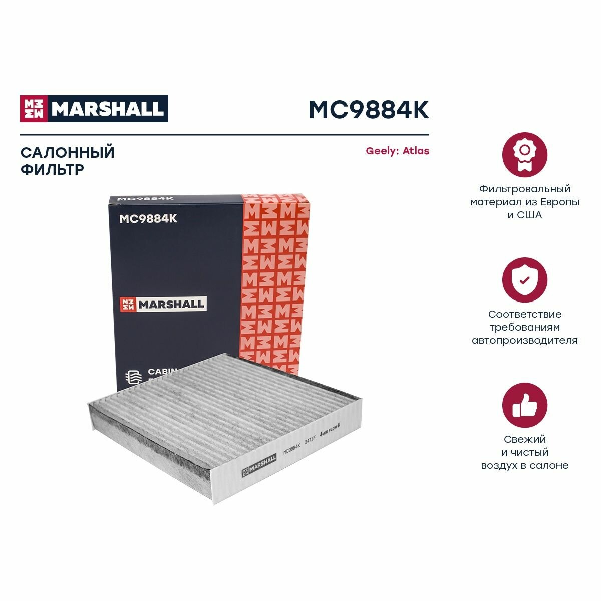 Фильтр Салонный Geely Coolray 20- (Mc6180) MARSHALL арт. MC6180