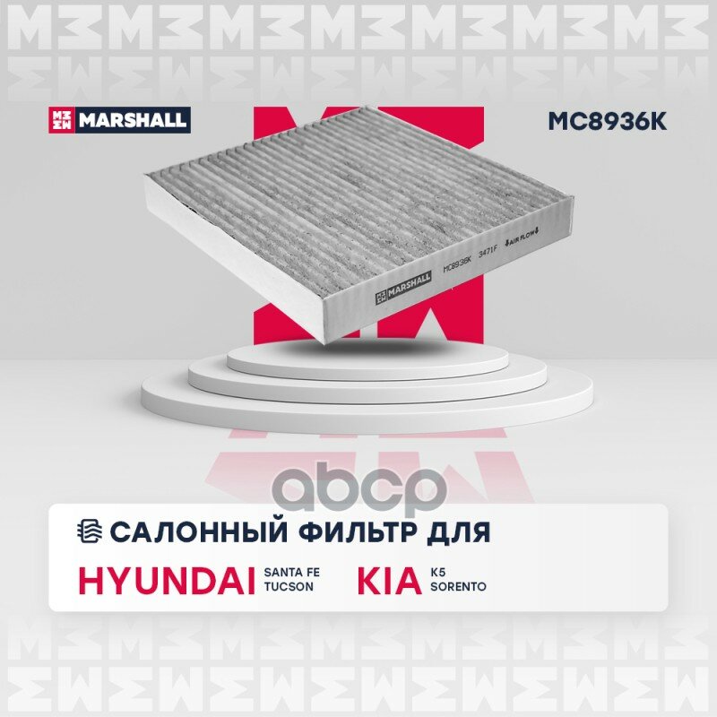 Купить Фильтр салонный угольный Hyundai Santa Fe IV 18- Tucson IV 21- Kia K5 20- Sorento IV 20- () Marshall MC8936K