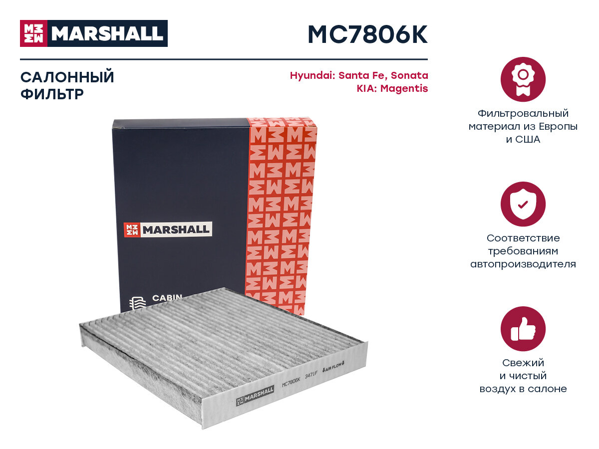 Фильтр салонный Hyundai Santa Fe II 06- / Sonata V 05-, Kia Magentis I, II 01 MARSHALL арт. MC7806