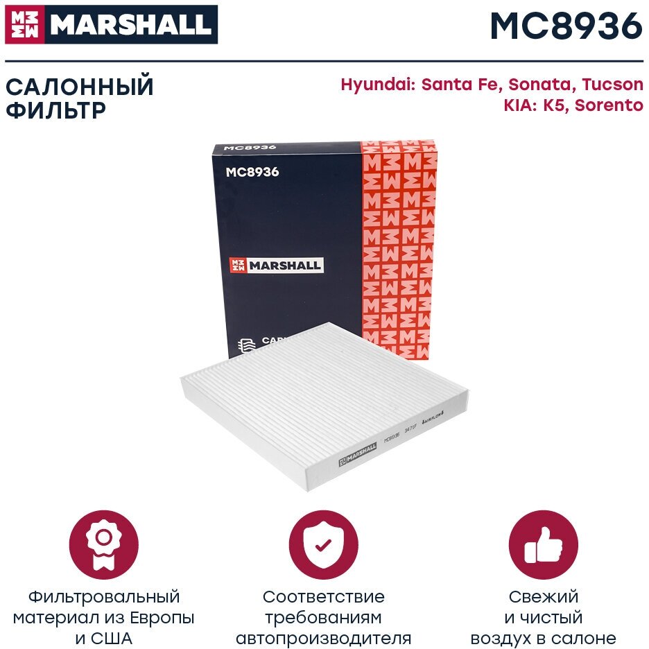 Купить Фильтр салонный Hyundai Santa Fe IV 18- Sonata VIII 19- Tucson IV 21- Kia K5 20- Sorento IV 20- () Marshall MC8936