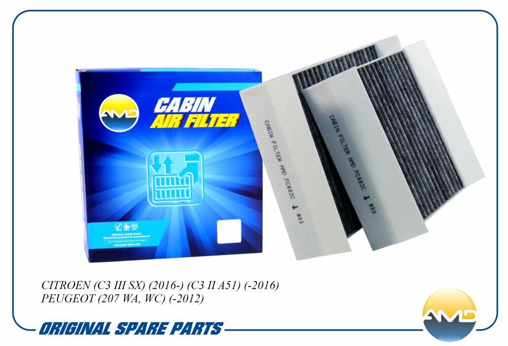 Фильтр салонный 6447. VY AMD. FC882C угольный 2шт для CITROEN C3 III SX PEUGEOT 207 WA, WC интересное: