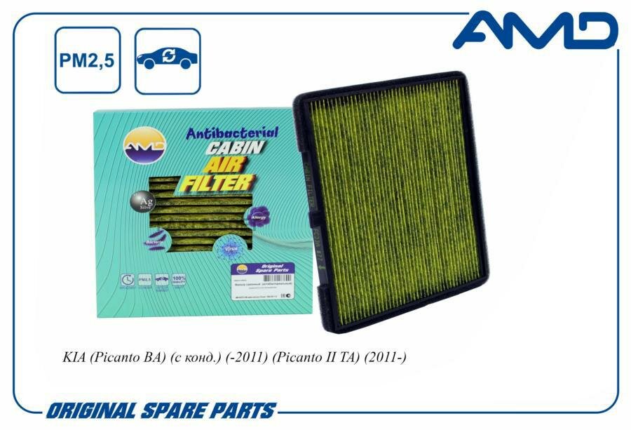 Фильтр салонный 97133-07010 AMD. FC23A антибактериальный, угольный для KIA Picanto BA с конд. Picanto II TA интересное: