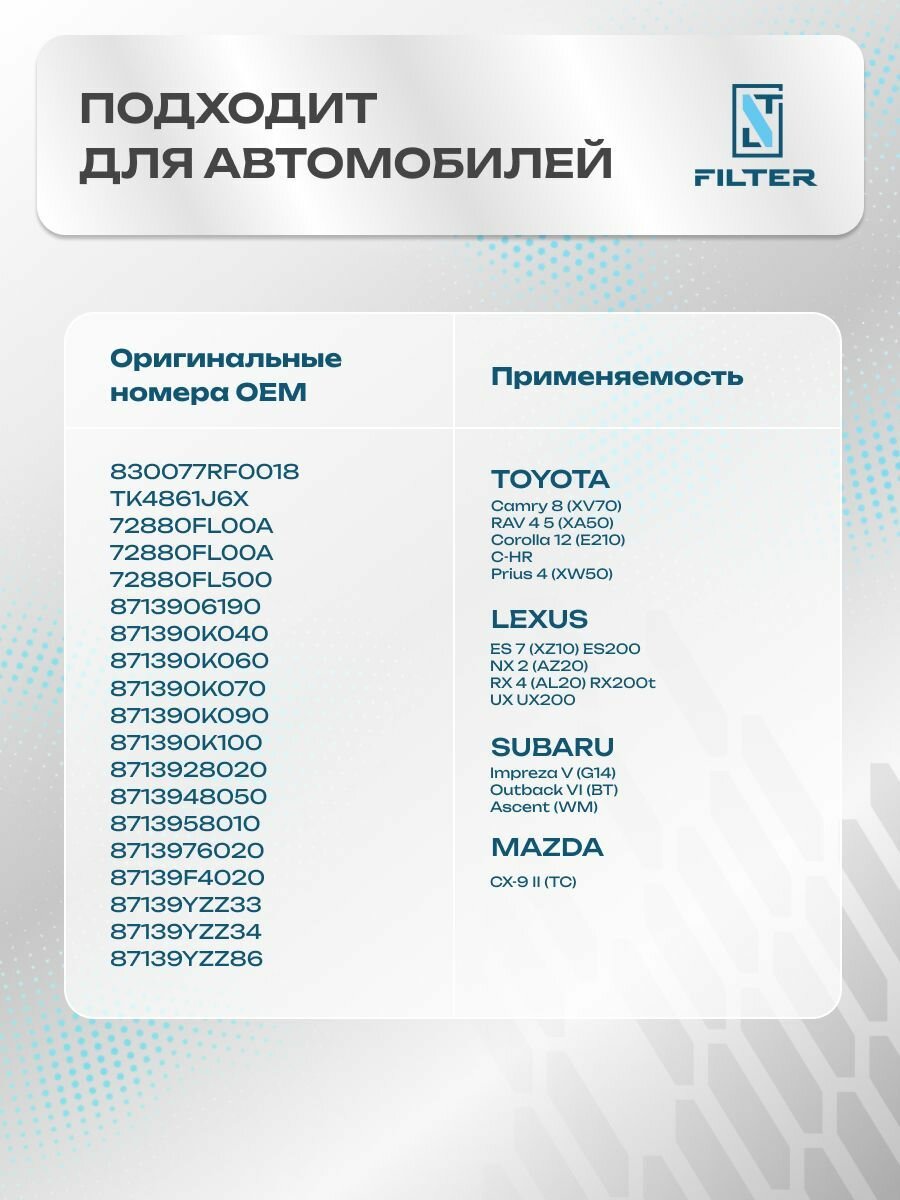 Фильтр салона угольный тойота Камри 70 Рав 4 xa50 Королла , TOYOTA Camry RAV4 Corolla CH-R 2015-2023 интересное: