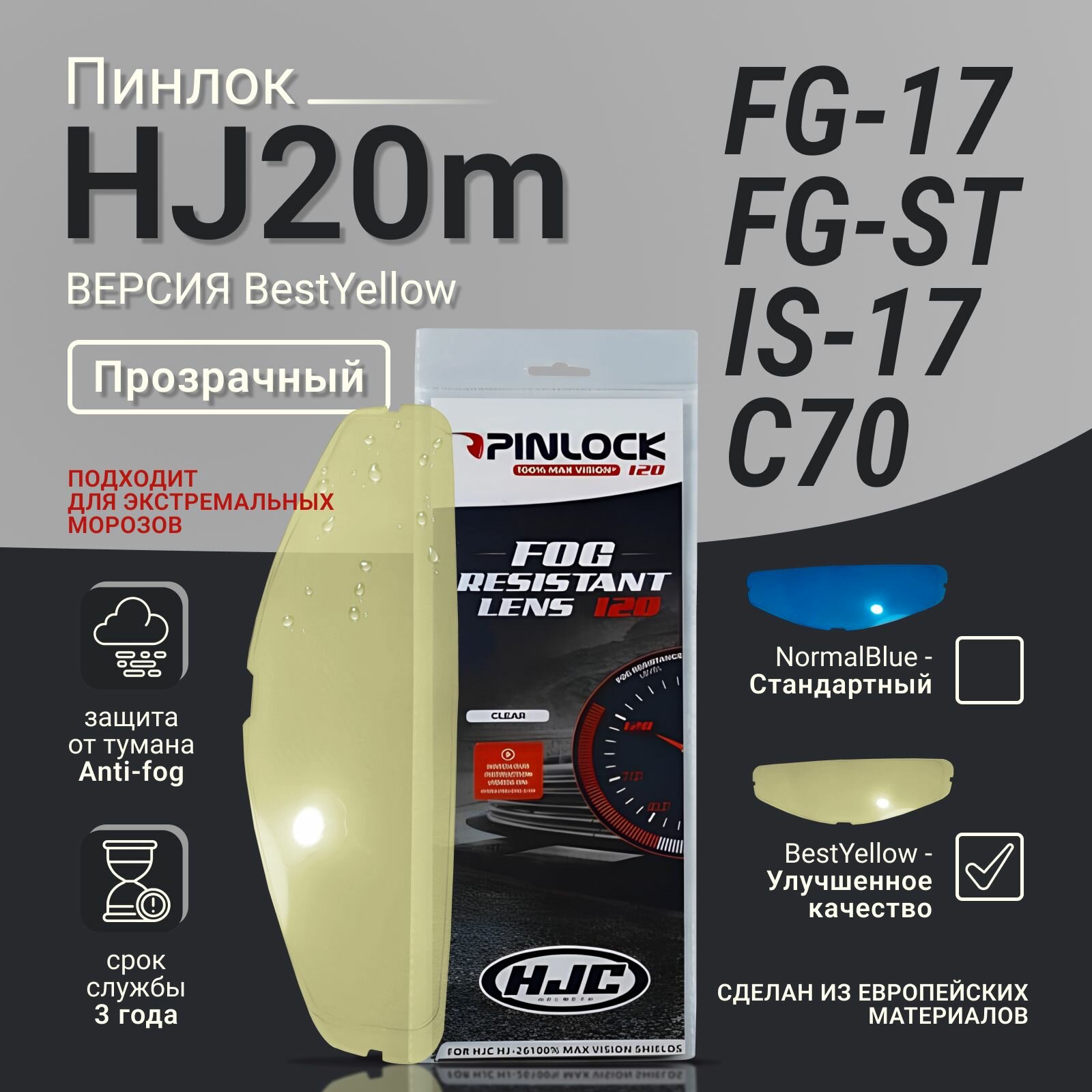 Пинлок к HJC HJ20m к шлемам C70 , FG-17 , FG-ST , IS-17 С70N . Прозрачный интересное: